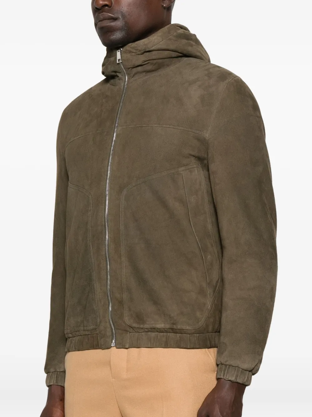 Оливково-зеленый замша застежка-молния спереди капюшон эластичные манжеты и пояс