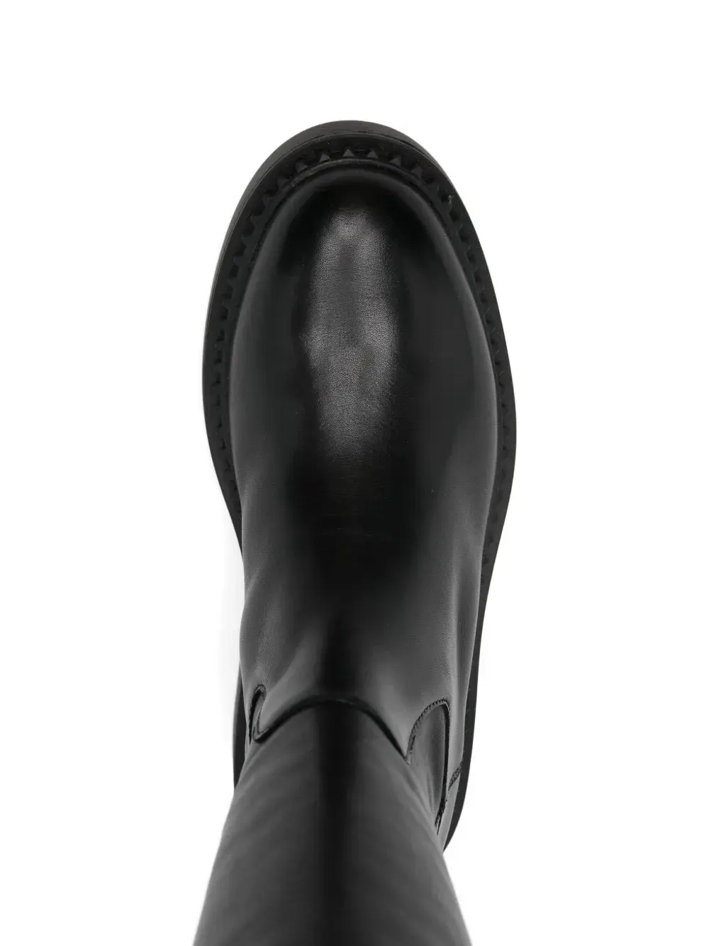 Черные ботфорты, рифленая подошва, дизайн без застежек, круглый носок, плоский каблук