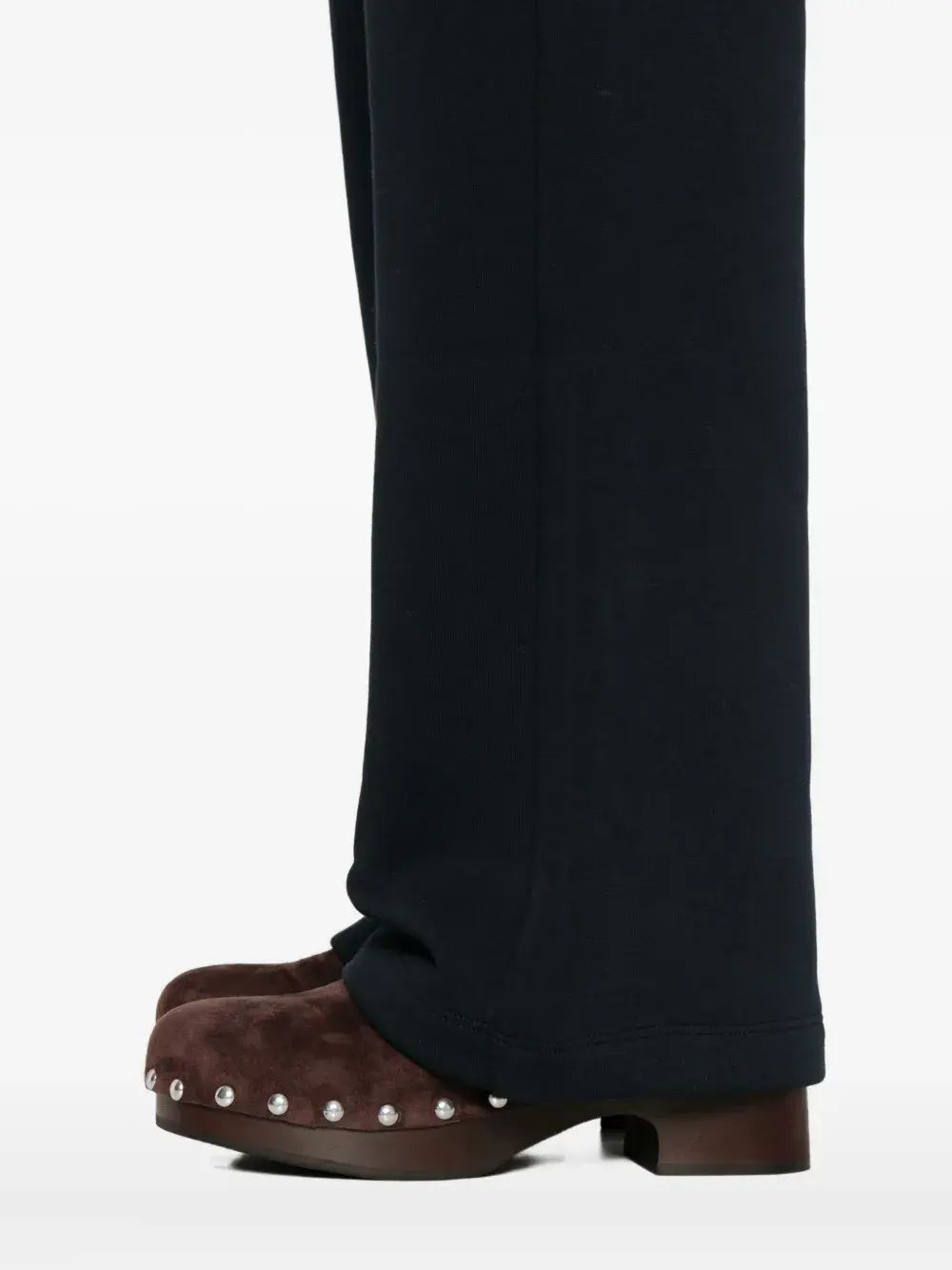 Темно-синий ребристый пояс отделка швов прямые брючины боковые прорезные карманы