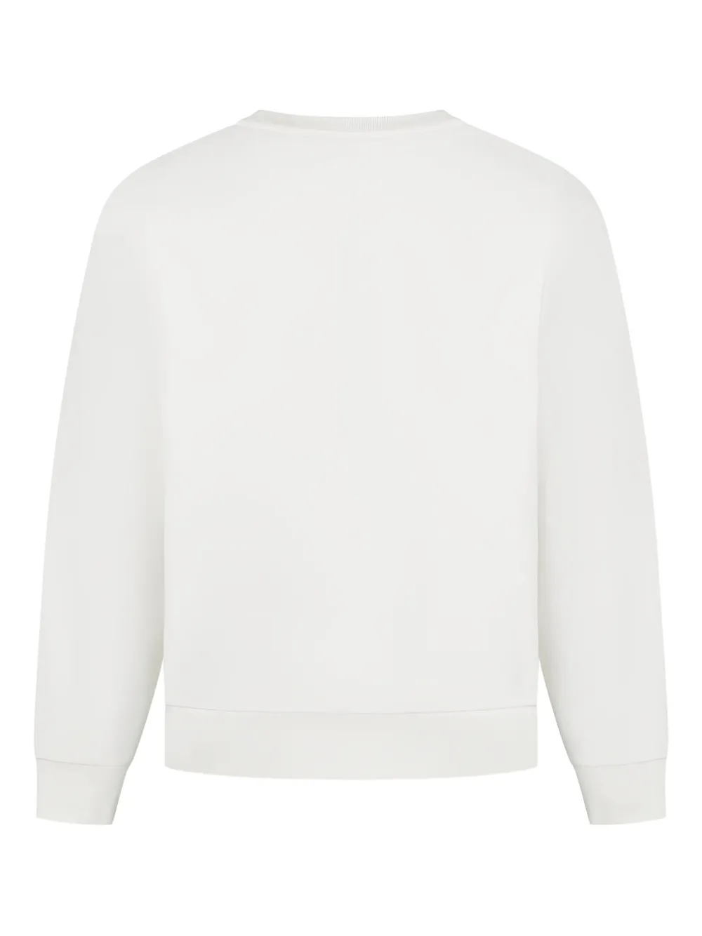 Белый вышитый логотип круглый вырез длинные рукава трикотажные манжеты и низ