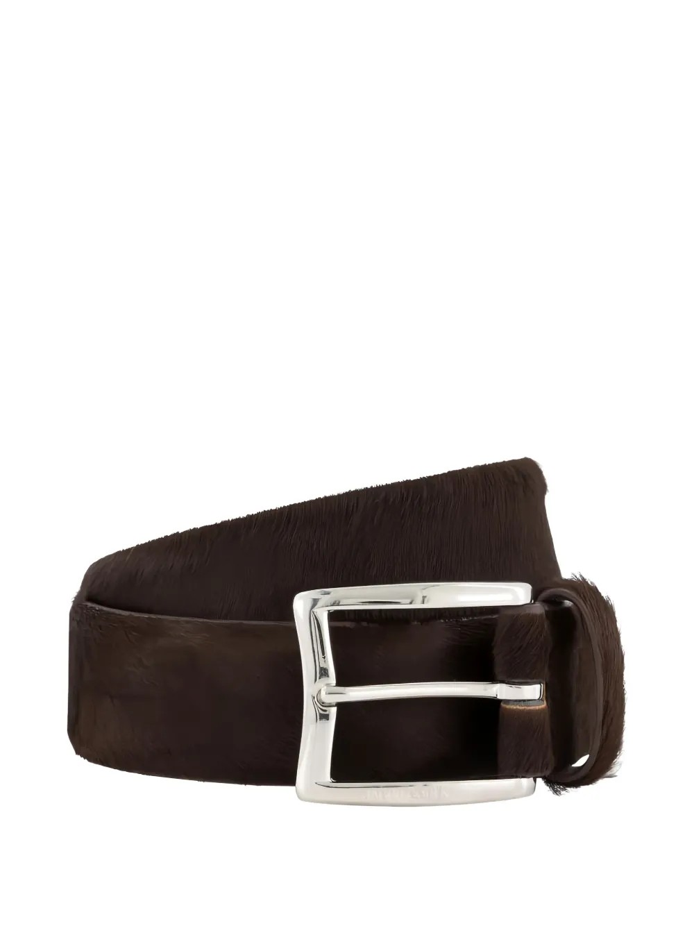 Темно-коричневый телячья шерсть фурнитура серебристого оттенка прямоугольная пряжка