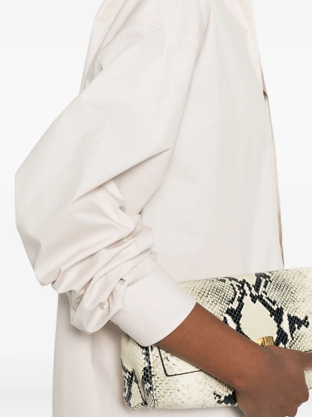 Кремово-белый застежка на пуговицы длинные рукава закругленный подол