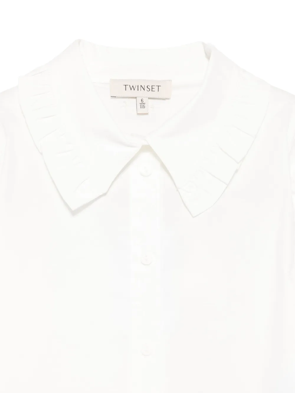 Белыйоборчатый воротникзастежка на пуговицы спередидлинные рукава