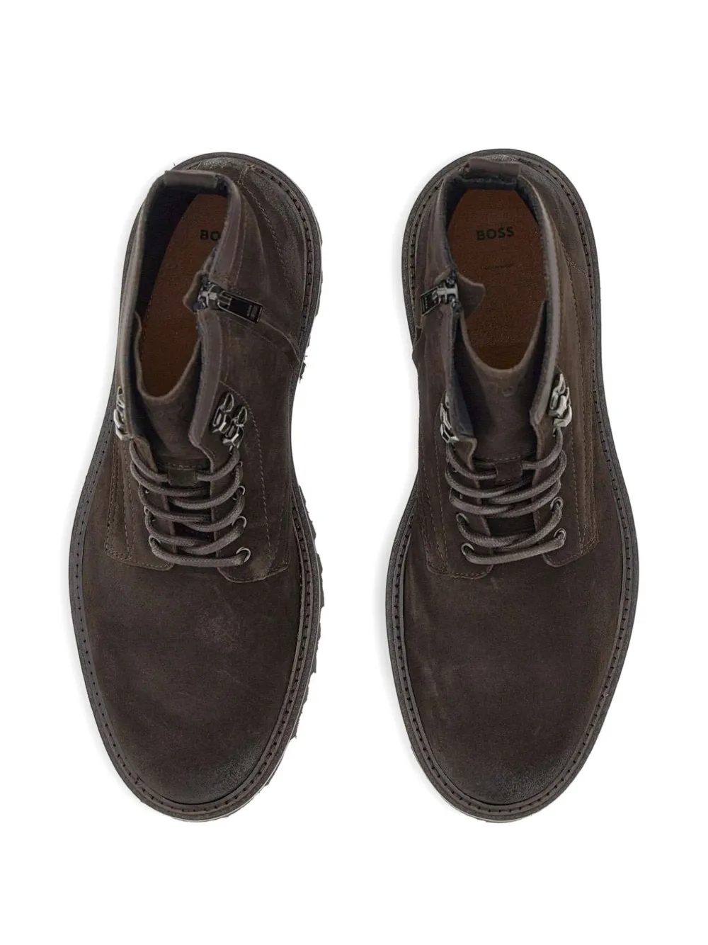 Кожаные ботинки на шнуровке BOSS, коричневый