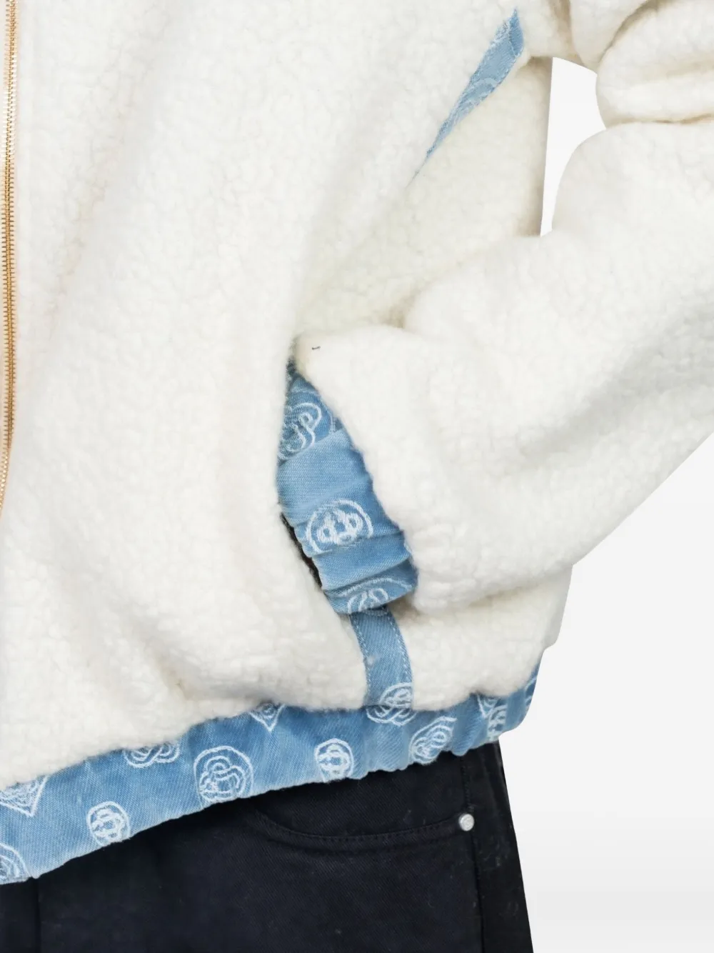 Светло-голубой двусторонний худи с монограммой, застежкой-молнией, капюшоном и флисовой подкладкой