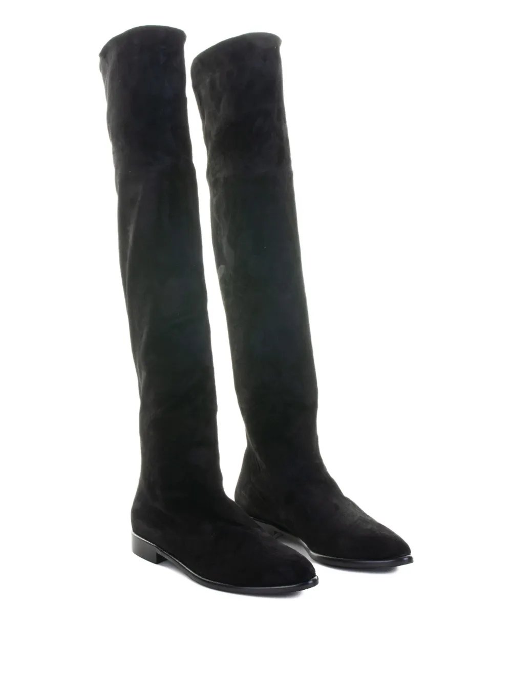 Черный замша высокое голенище выше колена плоская подошва модель без застежки (одеваются просто)