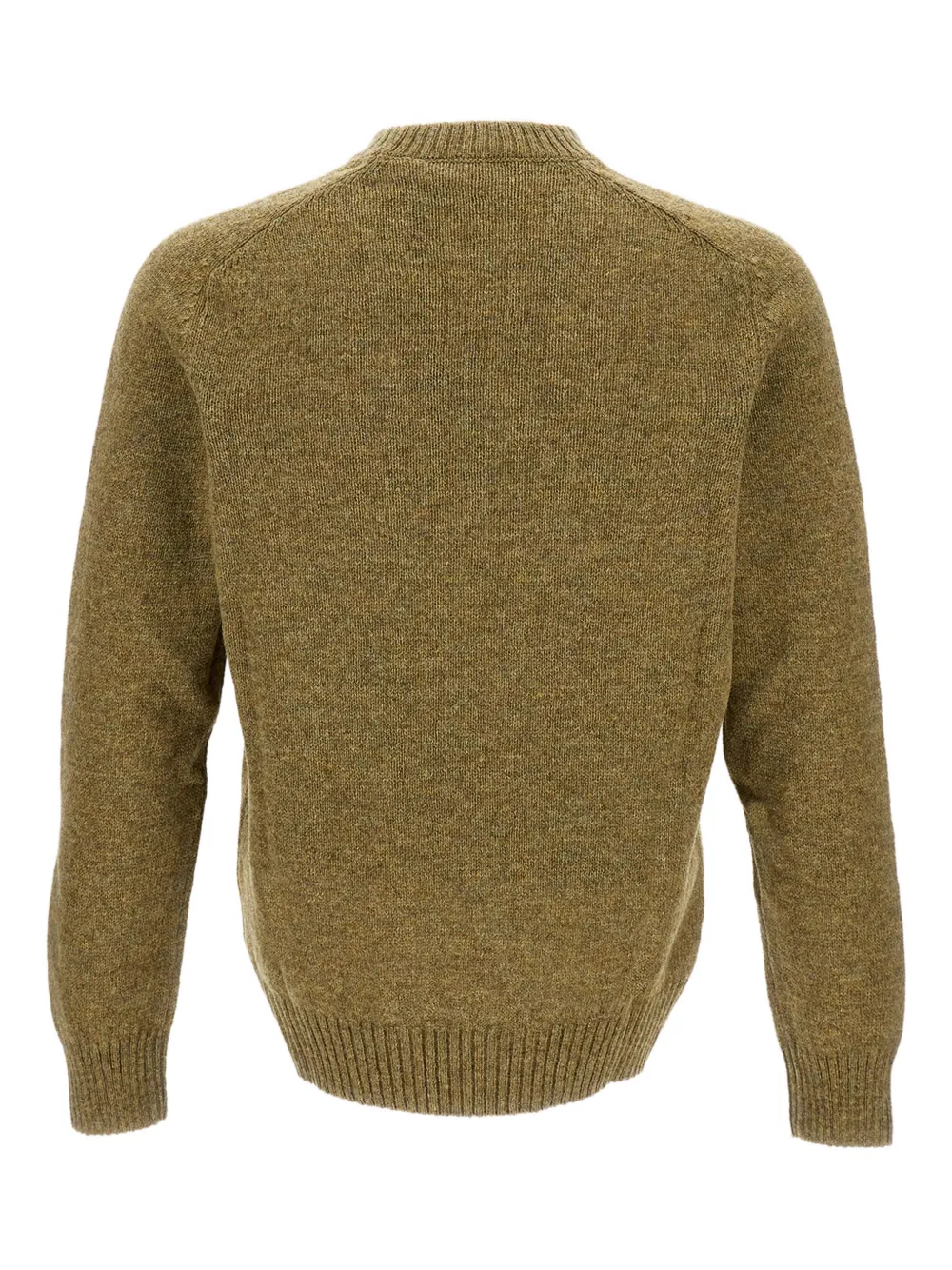 Коричневый круглый вырез длинные рукава шерсть рубчатая отделка