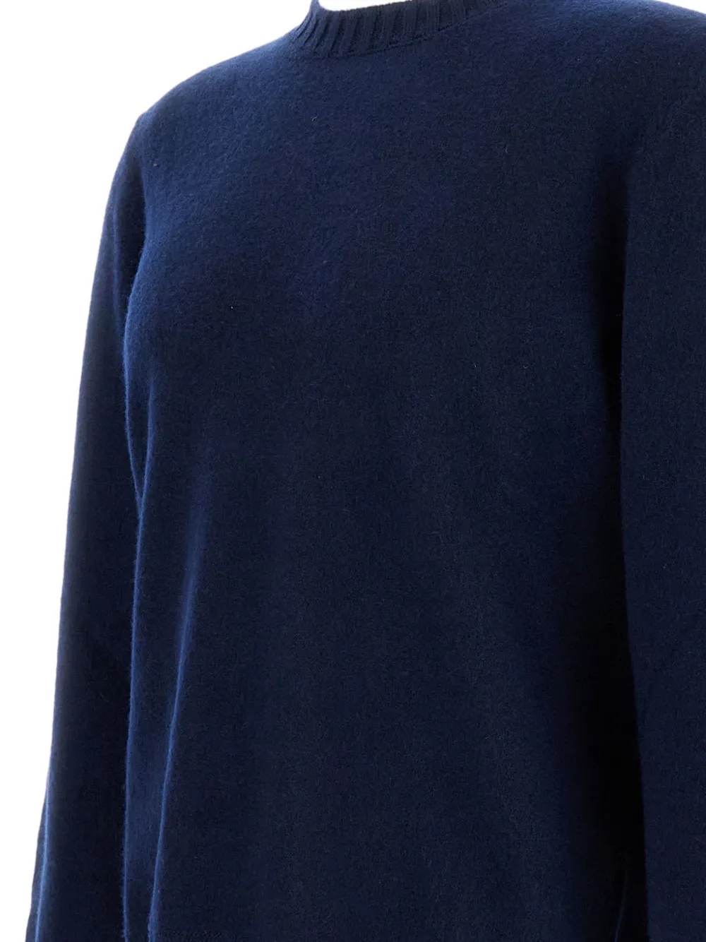 Темно-синий кашемир круглый вырез длинный рукав рубчатый низ и манжеты