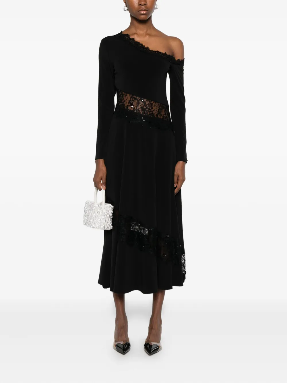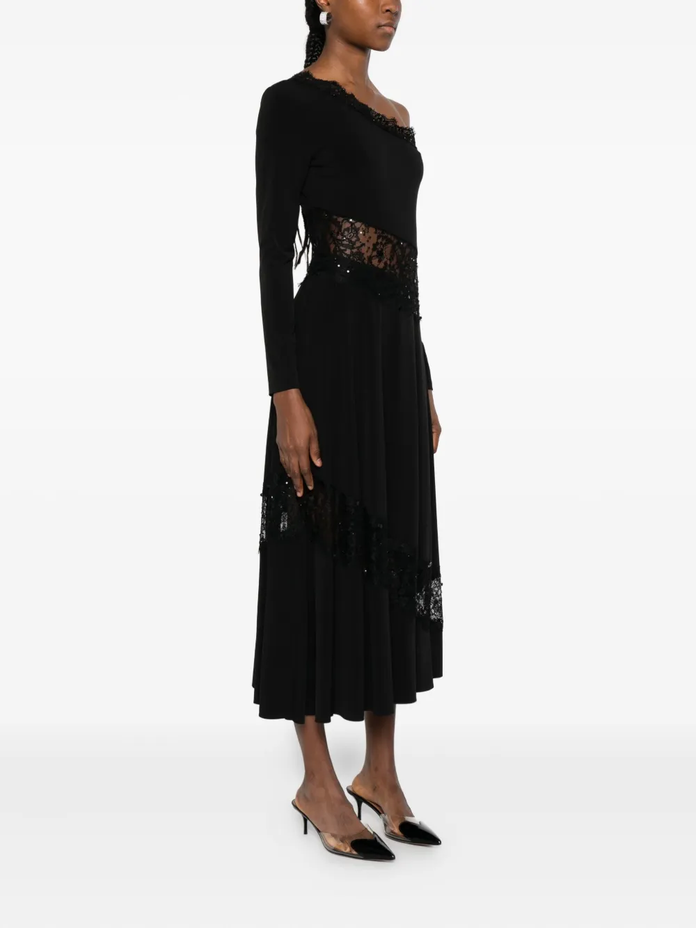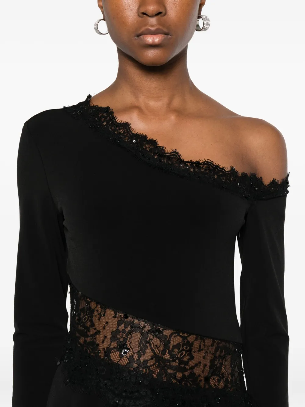 Платье на одно плечо с кружевом NISSA, черный 66 619₽
