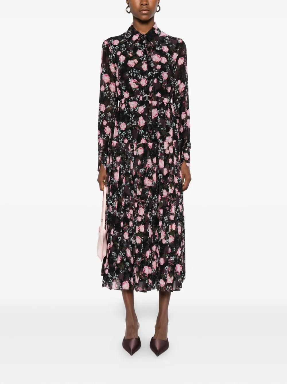Платье с цветочным принтом и складками NISSA, черный