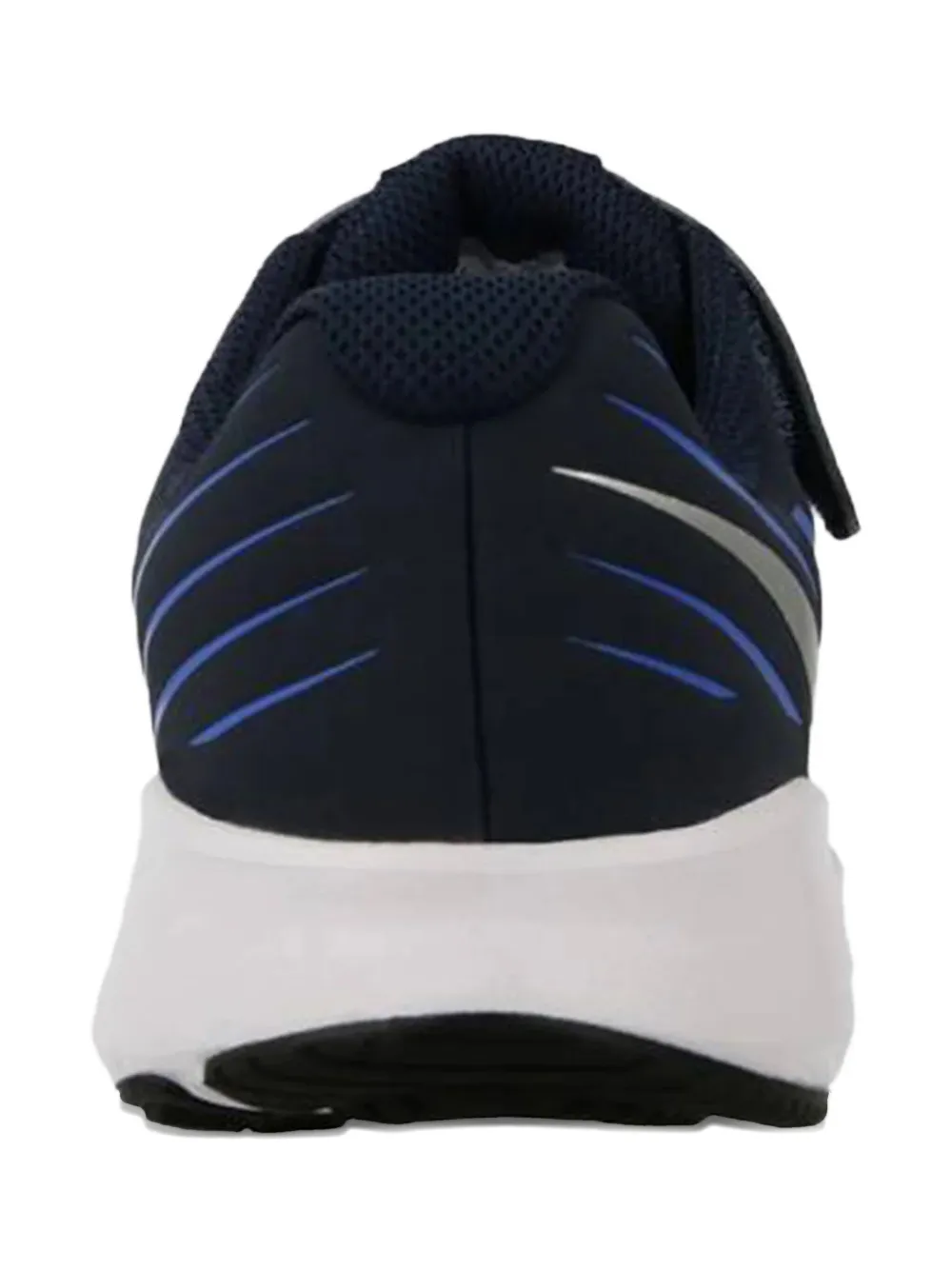 Темно-синий, серебристый логотип Swoosh, рифленые детали, застежка на липучке, мягкий воротник, белая промежуточная подошва