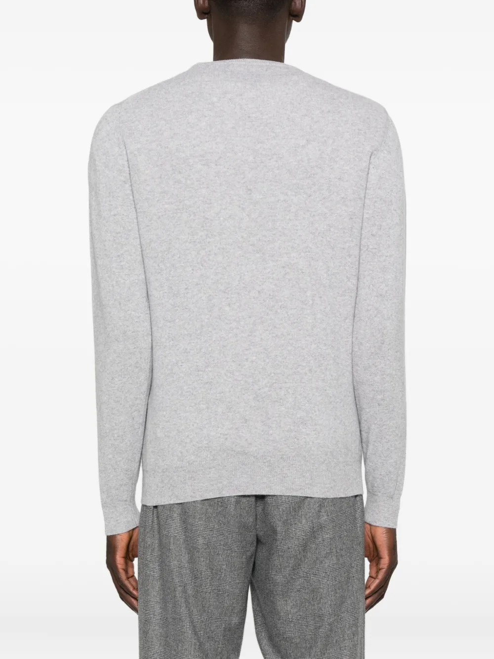 Серый тонкий трикотаж с круглым вырезом и длинными рукавами