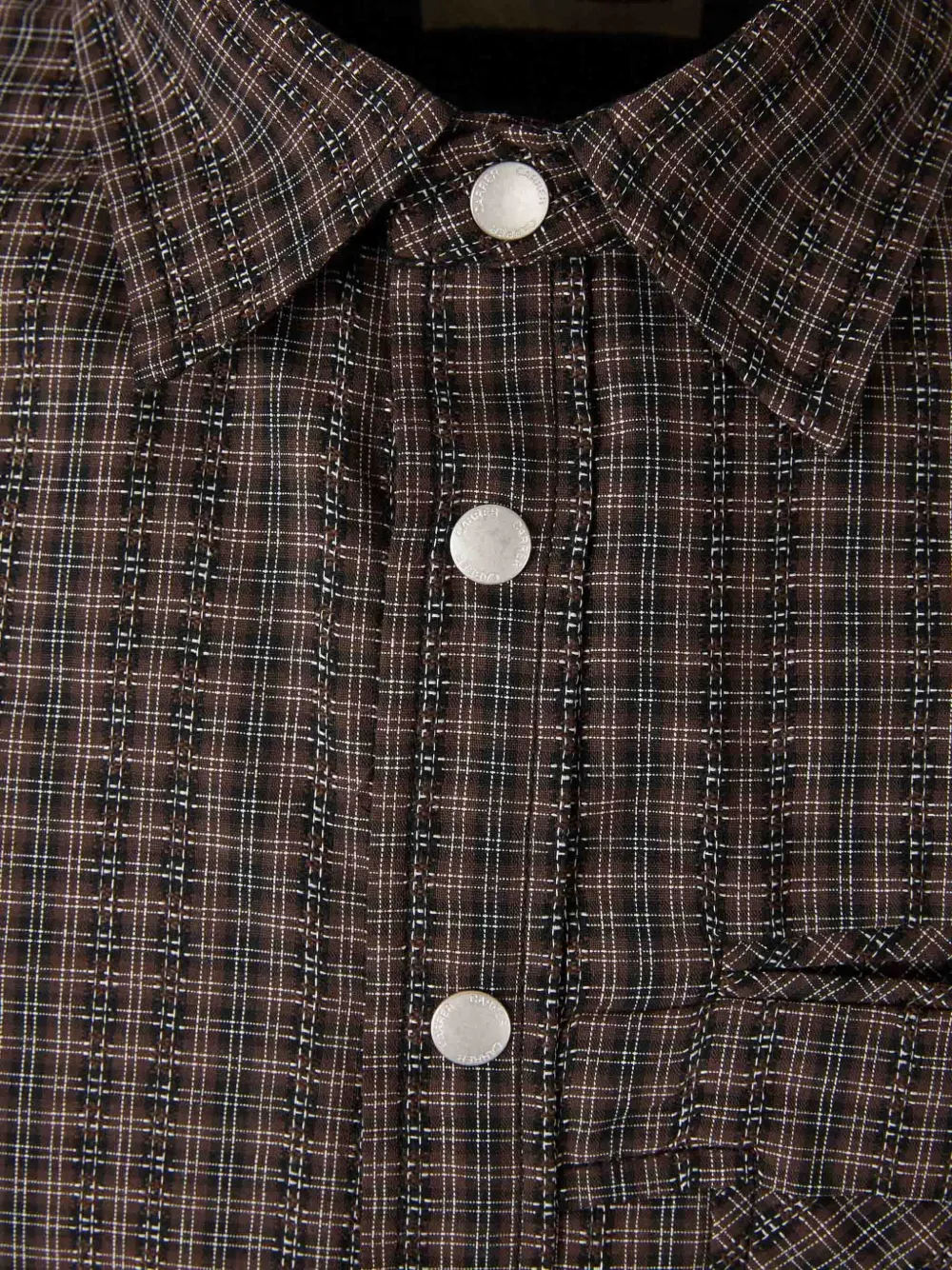 Коричневый хлопок застежка на пуговицы спереди клетчатый узор длинные рукава манжеты на пуговицах