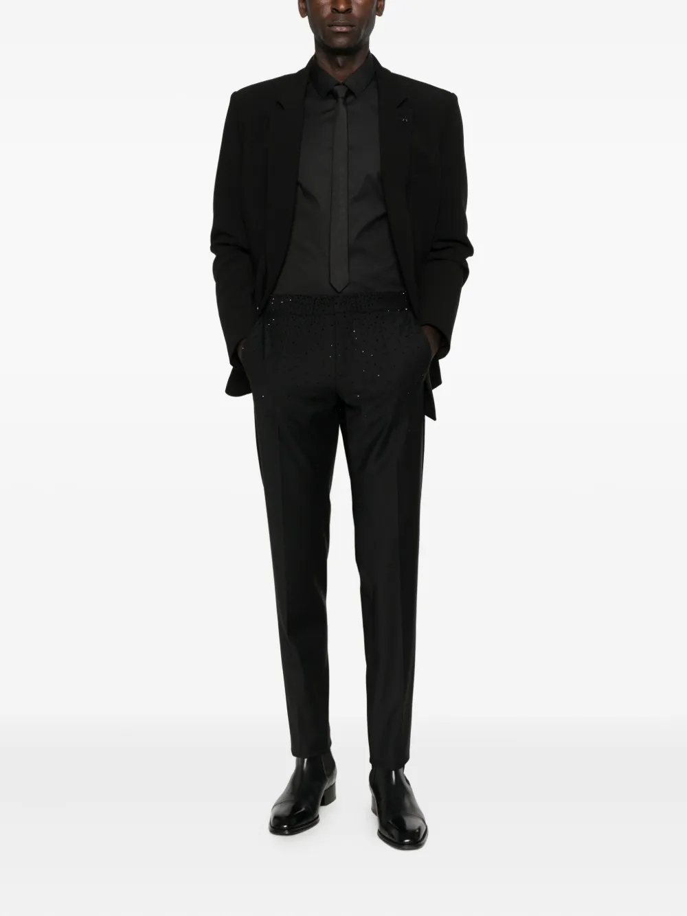 Черный украшен стразами приталенный крой легкий