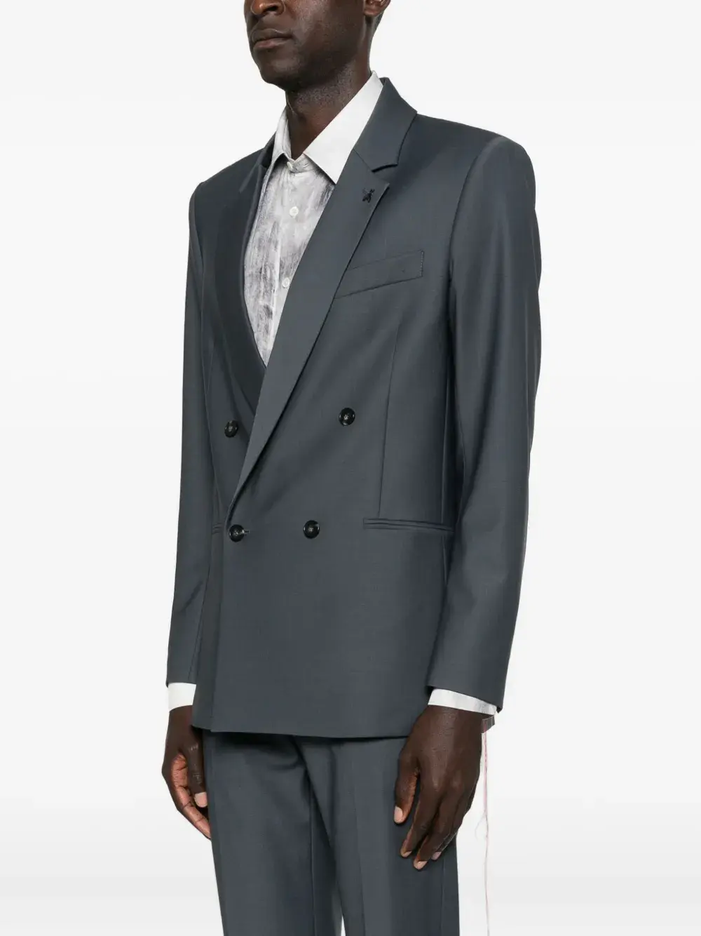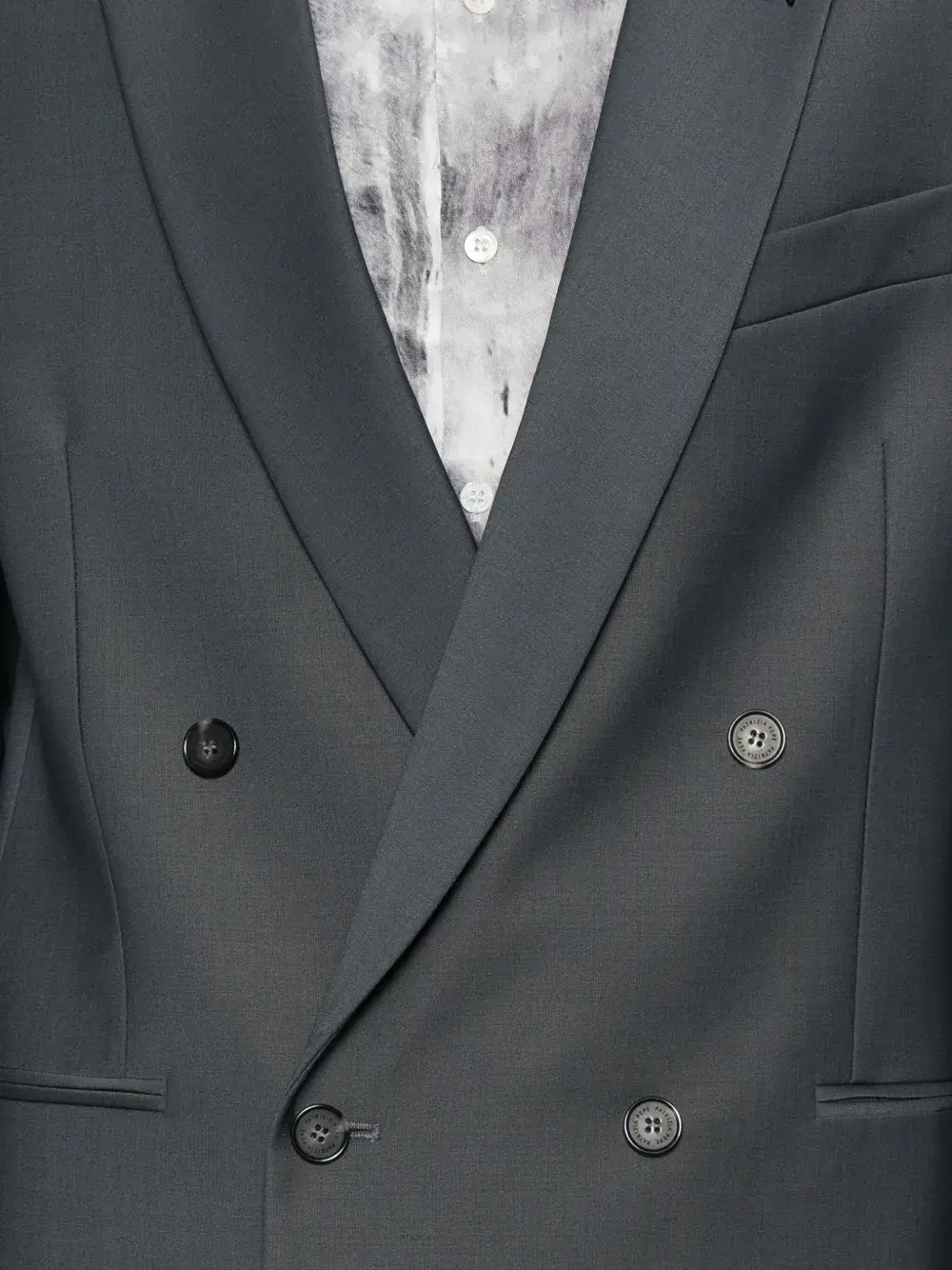 Серый двубортная застежка на пуговицы манжеты на пуговицах два передних прорезных кармана нагрудный прорезной карман