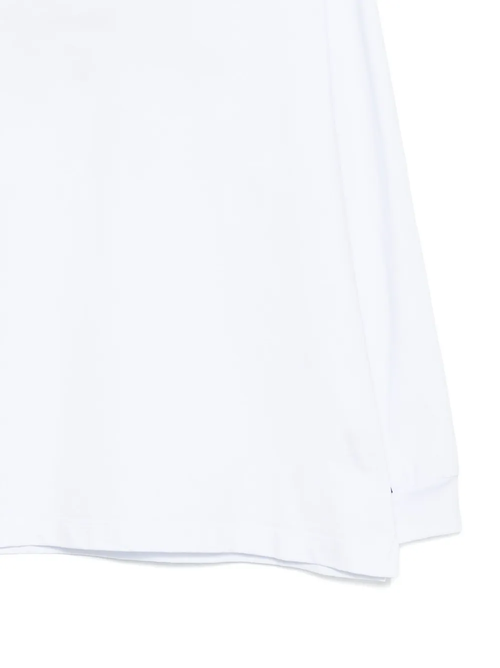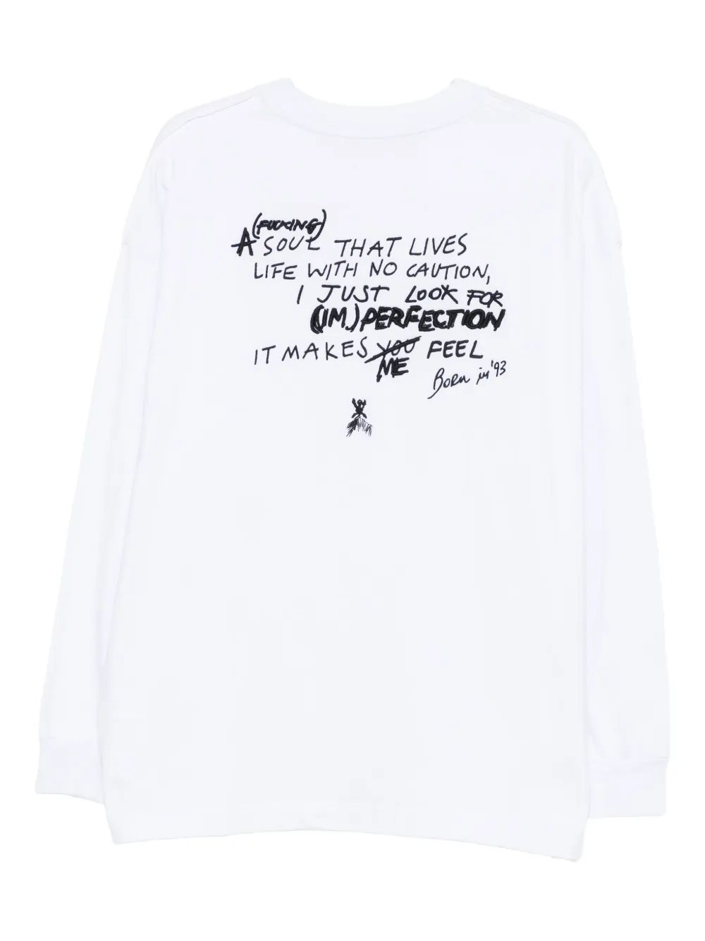 Белый хлопок длинные рукава принт с текстом круглый вырез прямой низ