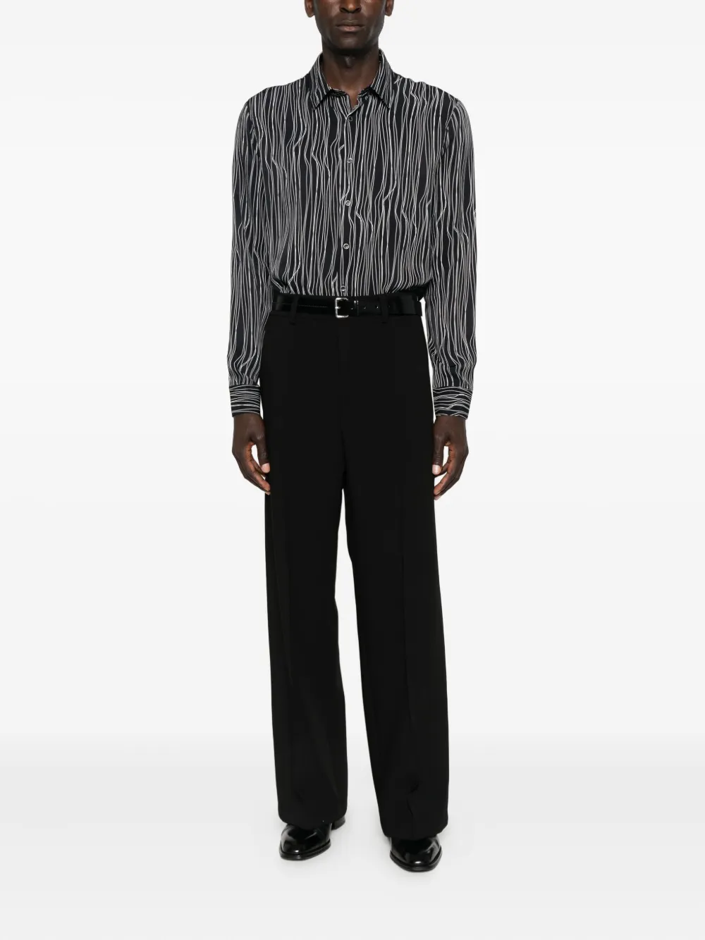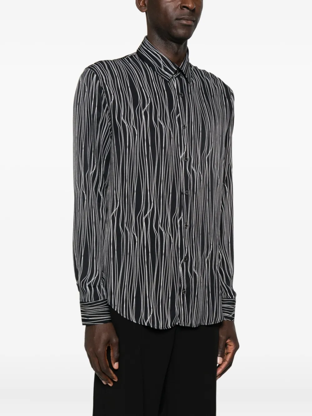 Черный всеобщий графический принт застежка на пуговицы спереди длинные рукава манжеты на пуговицах