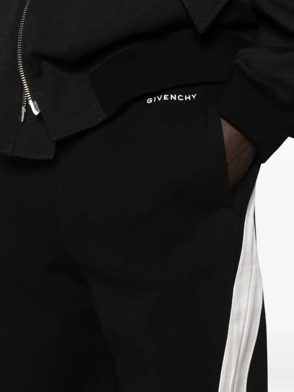 Черныйткань из хлопкового блендадетали в полоскуэластичный поясбоковые карманывышитый логотип