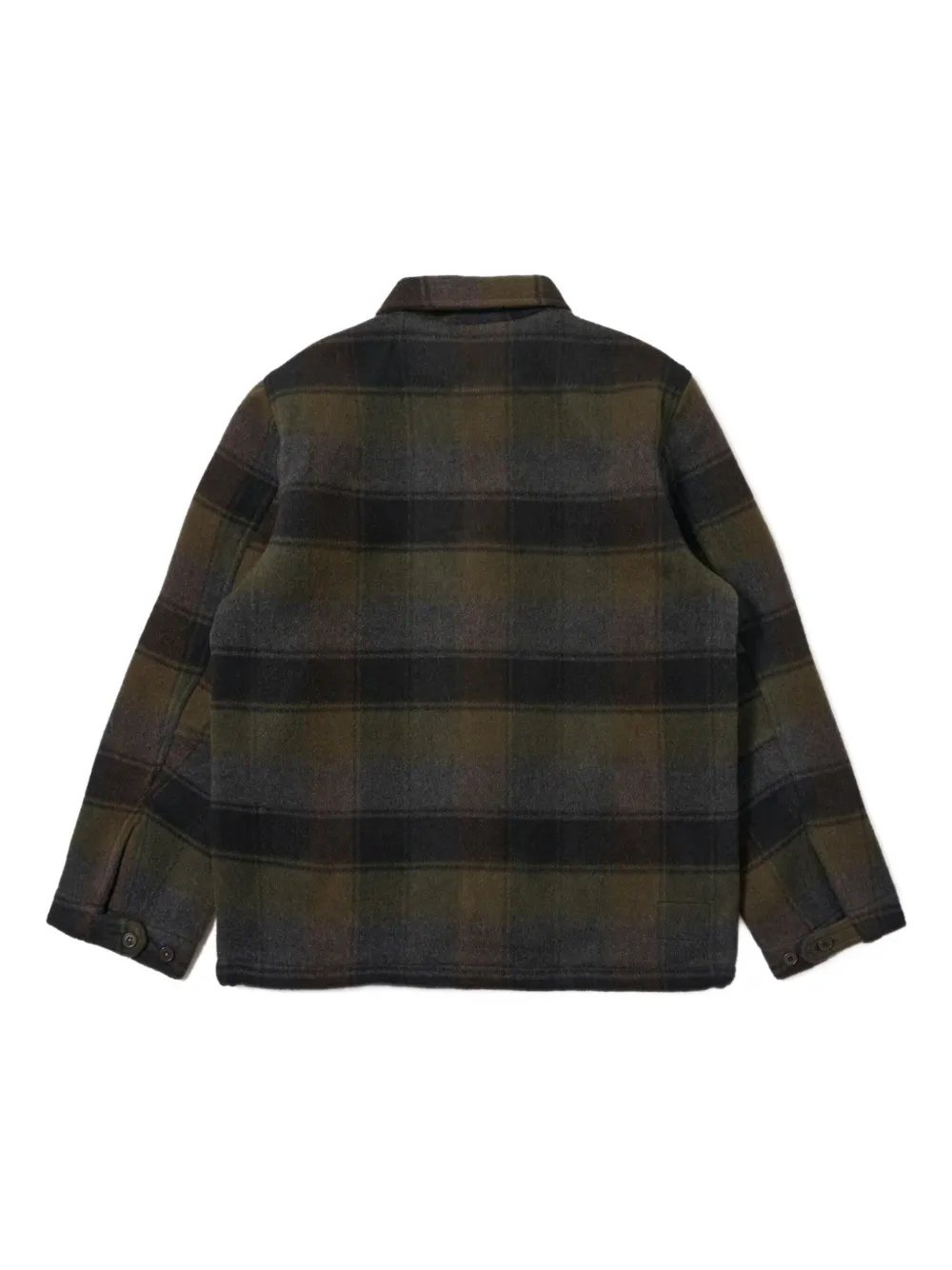Коричневый клетчатый узор застежка на пуговицах два прорезных кармана низ на кулиске длинные рукава манжеты на пуговицах