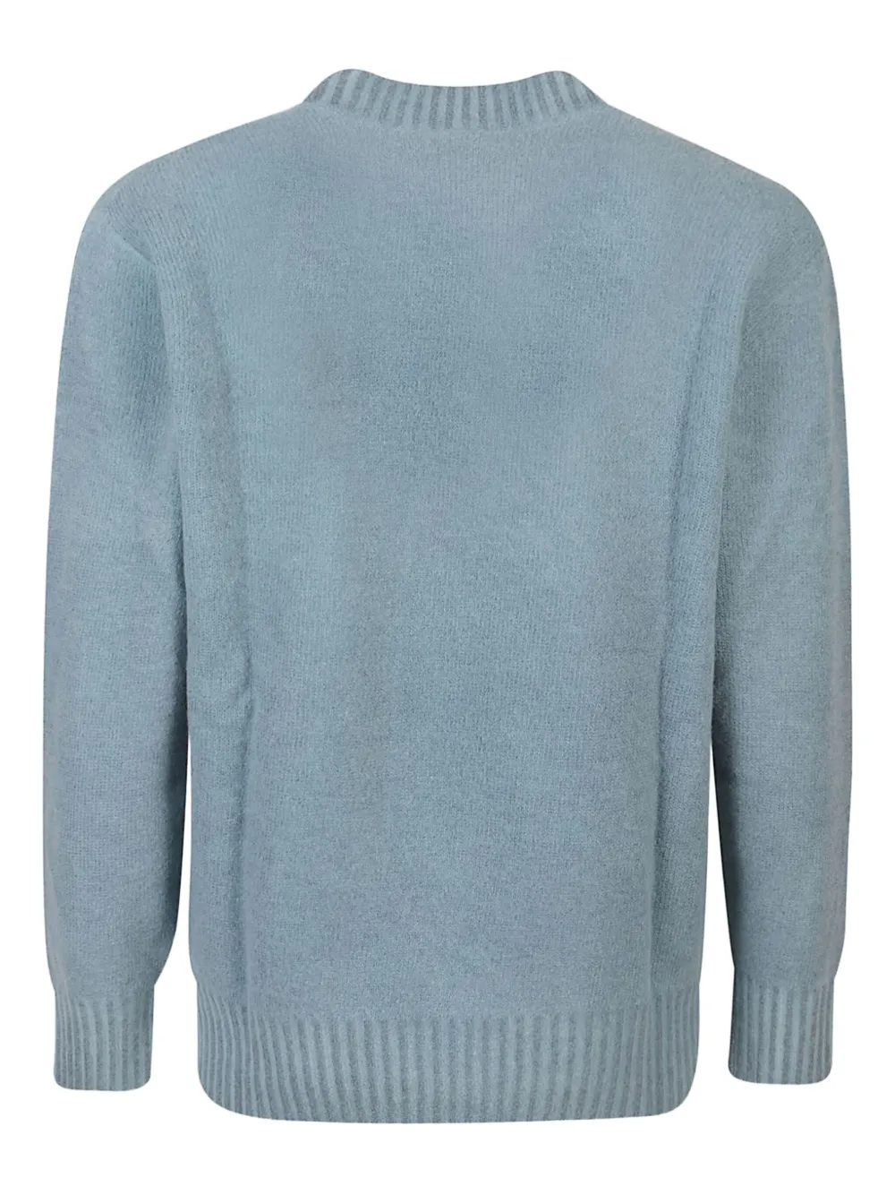 Светло-голубой шерстяной джемпер с круглым вырезом, длинными рукавами, ребристым подолом, простая вязка