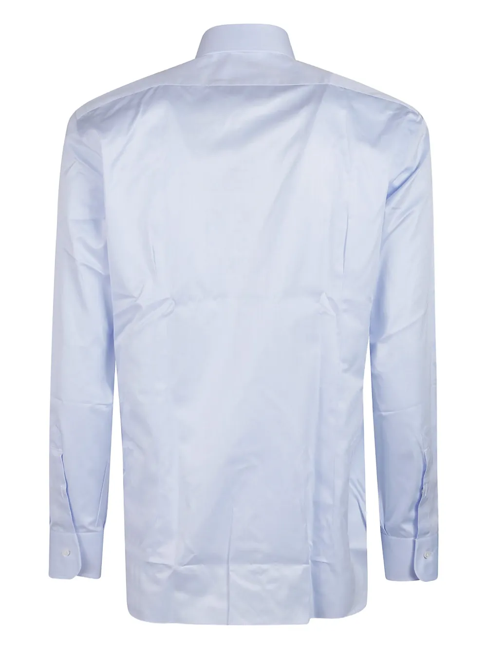 Светло-голубой длинные рукава застежка на пуговицах воротник с острыми концами прямой низ хлопок