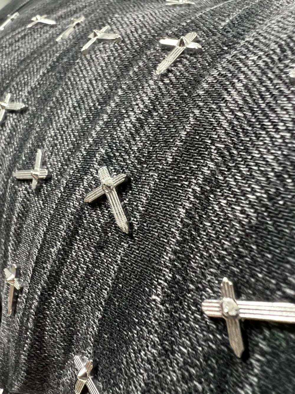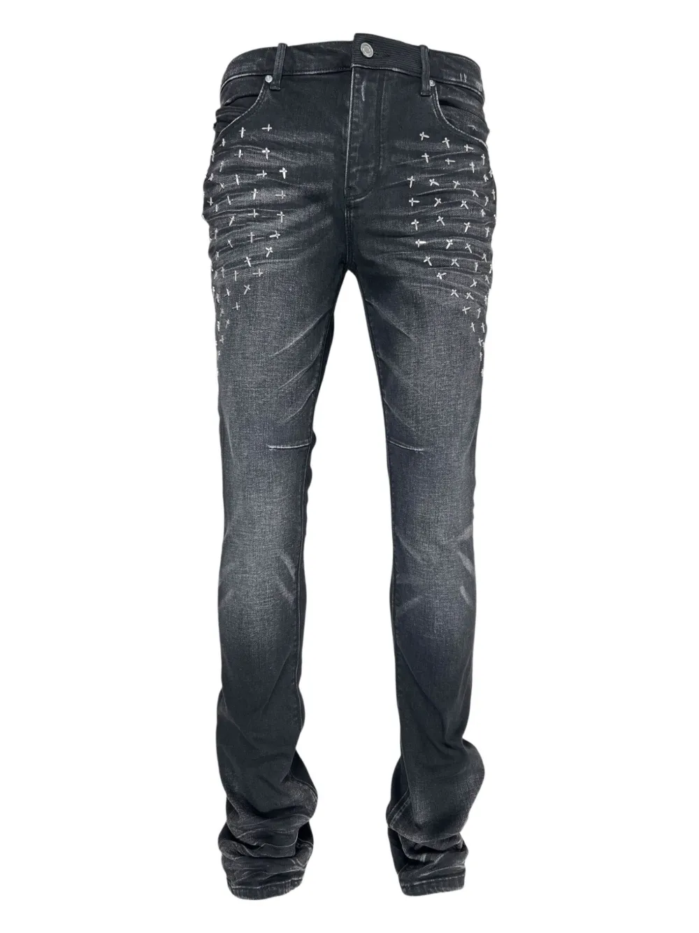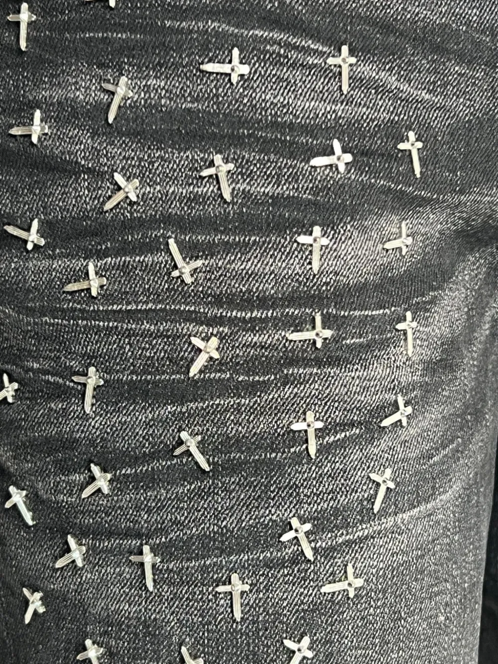 Черный выцветшая стирка украшения в виде крестов на переднем кармане украшение в виде креста RTA на заднем кармане смесь хлопка