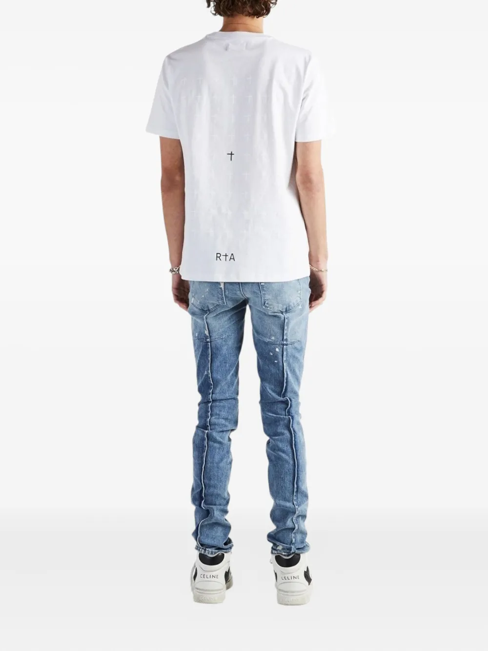 Светло-голубой эффект разбрызганной краски вышитый логотип эффект состаренности классические пять карманов