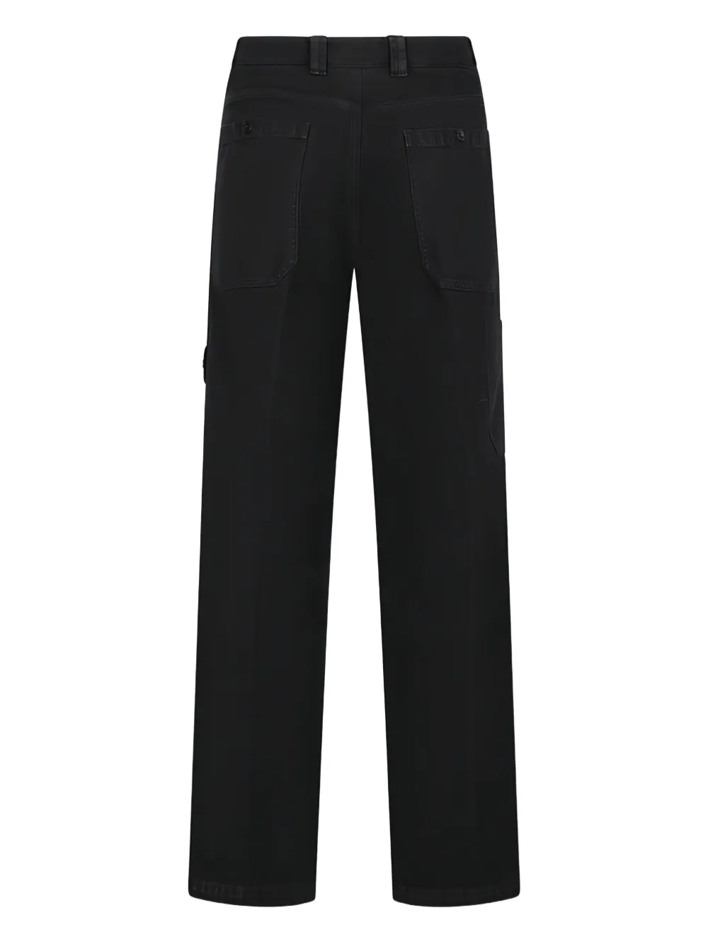 Черные шлевки для ремня, боковой накладной карман, задние накладные карманы, застежка на пуговицы