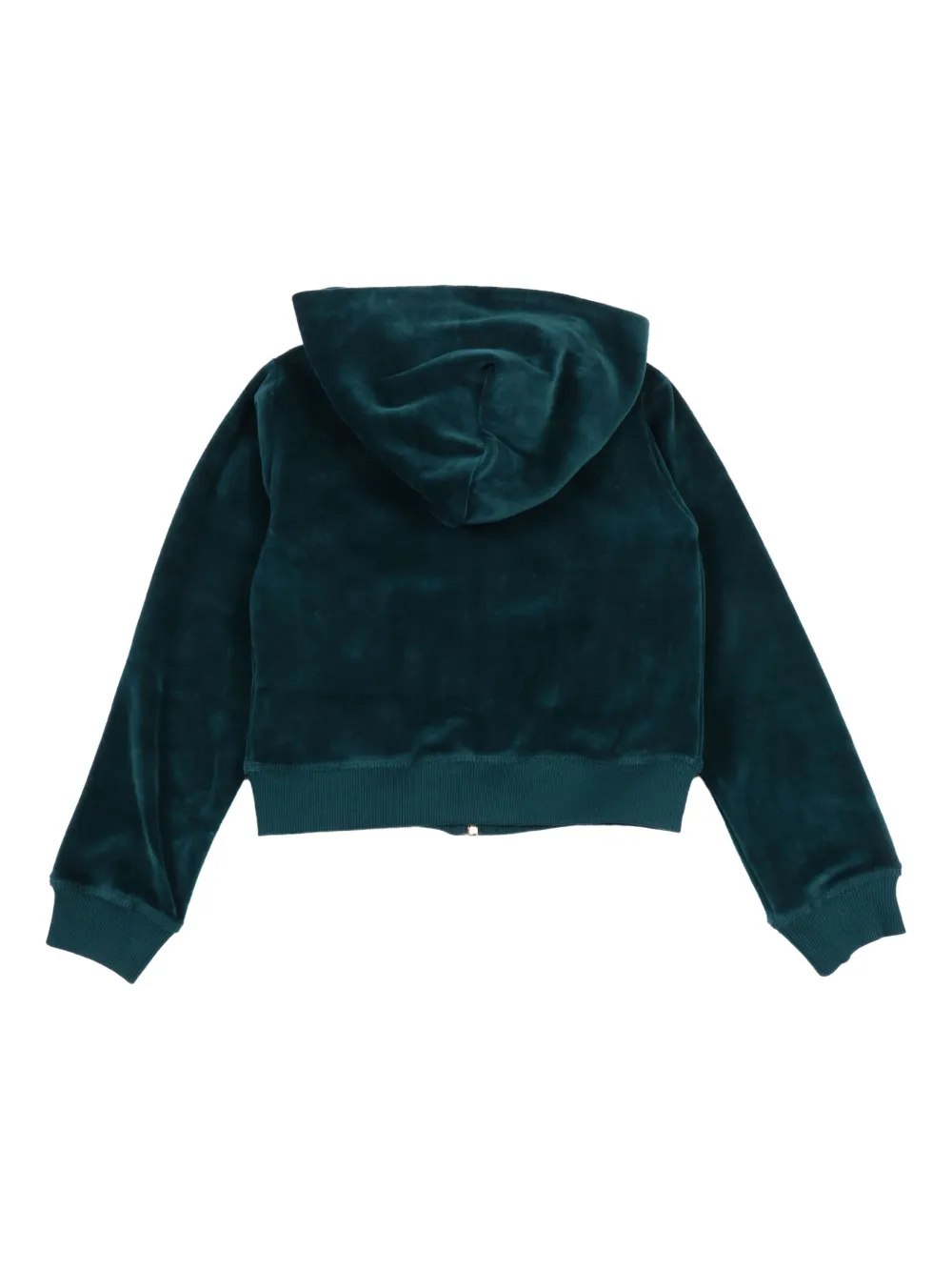 Сосново-зеленая толстовка с капюшоном, застежкой-молнией, передними карманами, рубчатым низом и манжетами