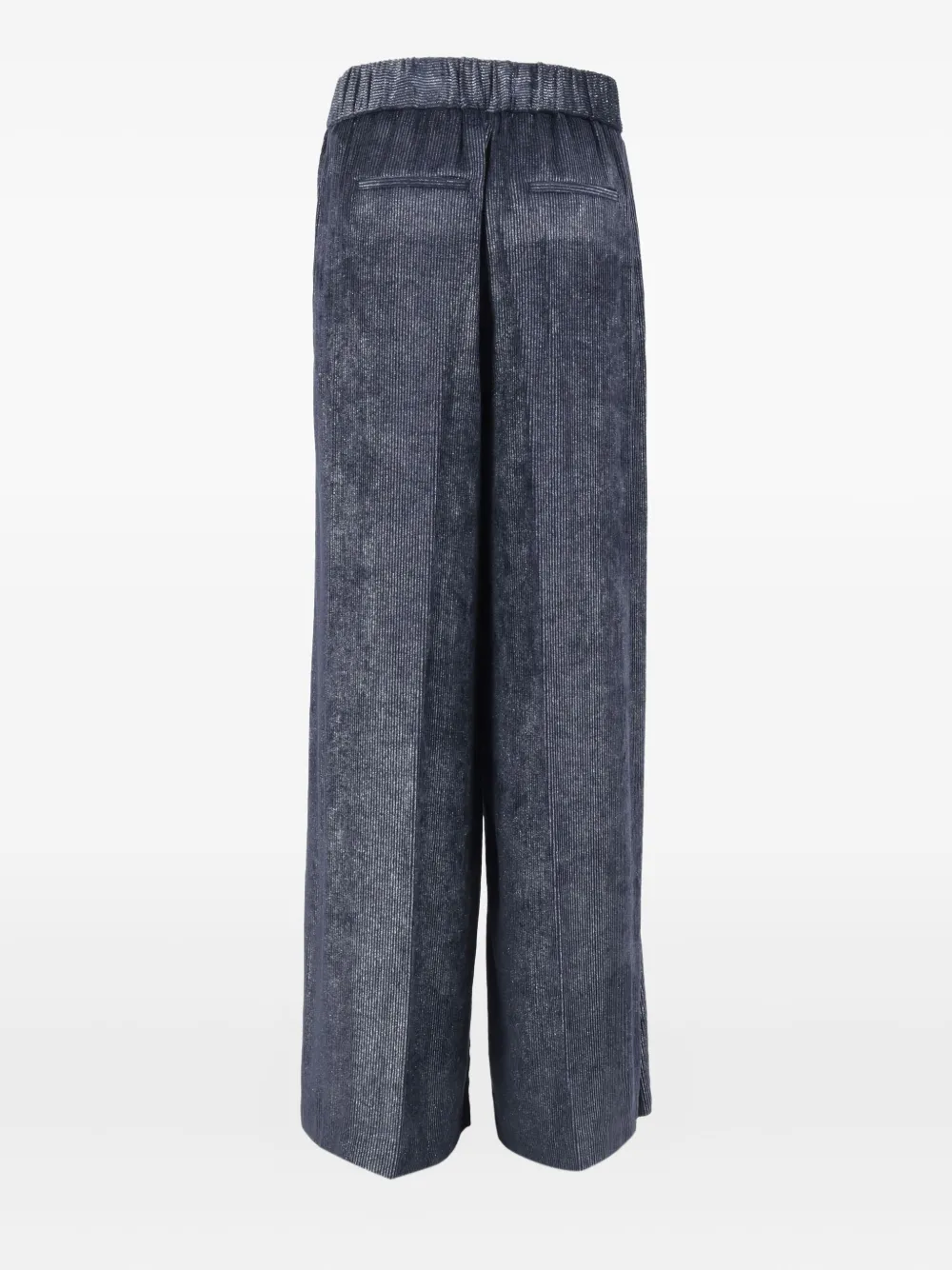 Темно-синий вельветовая текстура широкие брючины эластичный пояс прямой низ