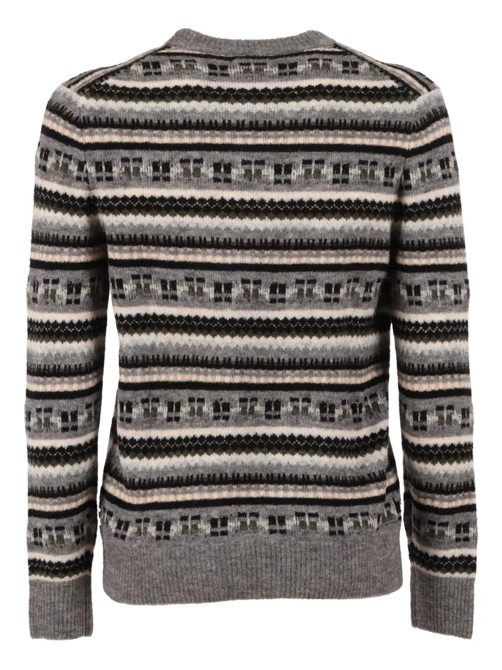 Серый шерстяная смесь вязка интарсия с узором Fair Isle круглый вырез длинные рукава ребристые манжеты и низ