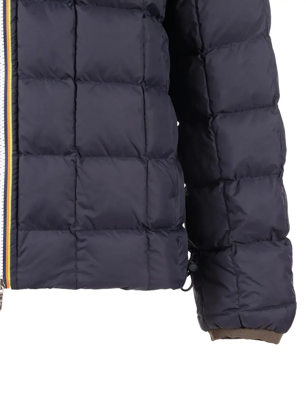 Темно-синий стеганый дизайн простеганный узор застежка на молнии капюшон длинные рукава