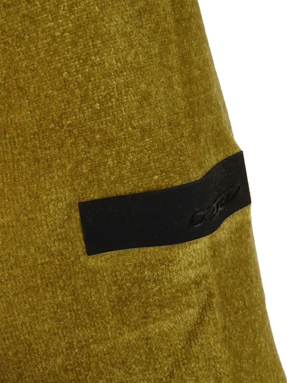 Оливково-зеленый бархатистая текстура круглый вырез длинные рукава манжеты в рубчик нашивка с логотипом