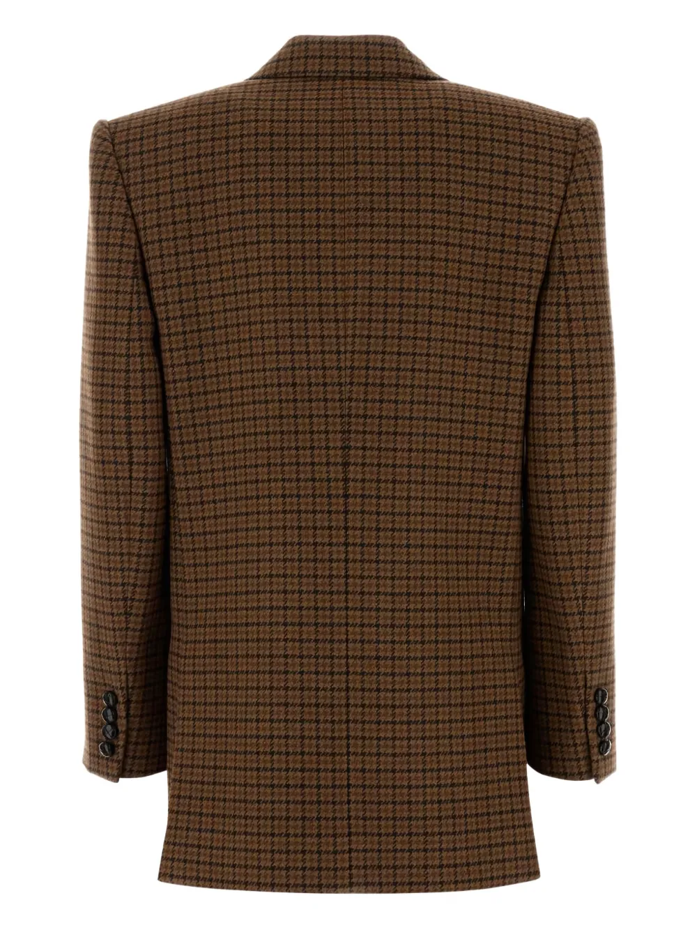 Коричневый пиджак в гусиную лапку с двубортной застежкой на пуговицы, с подплечниками, с длинными рукавами