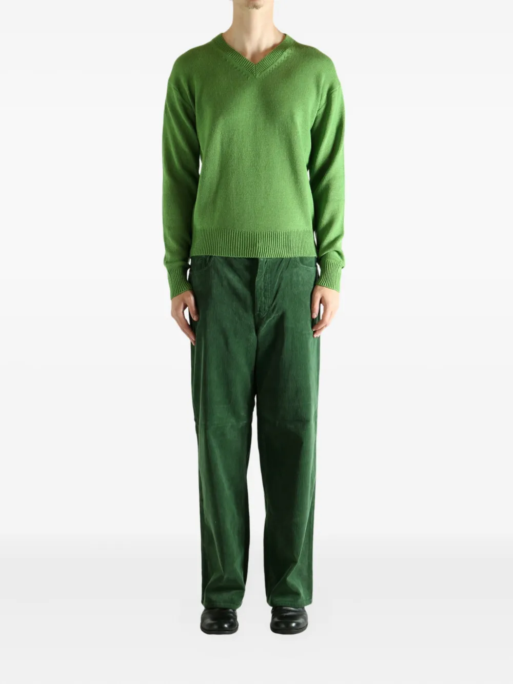 Рифленый свитер с V-образным вырезом Auralee, зеленый