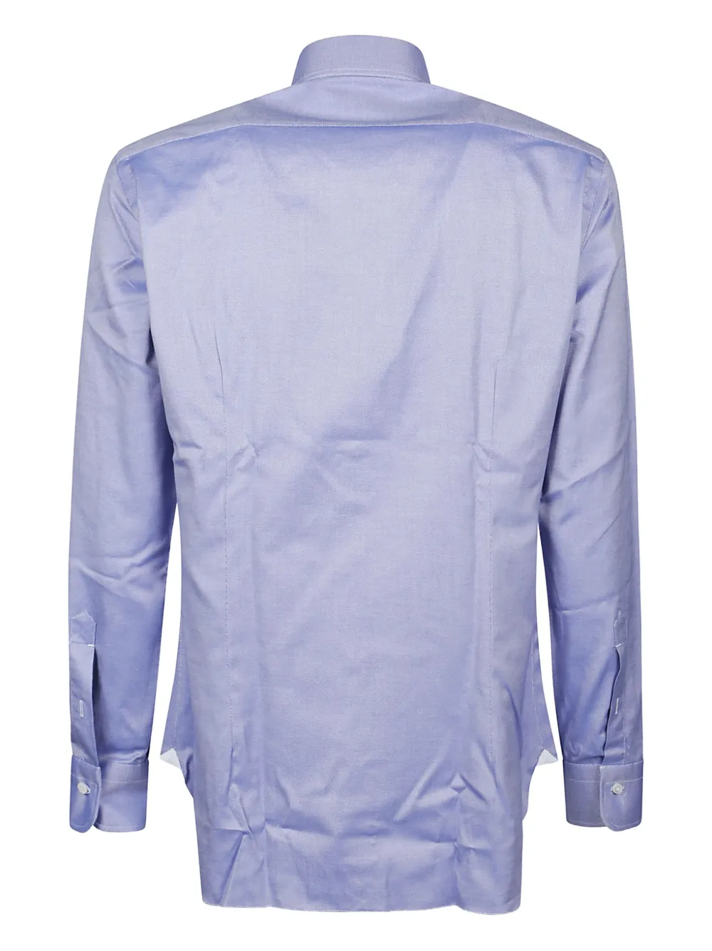 Светло-голубая хлопковая рубашка с застежкой на пуговицы, отложным воротником, длинными рукавами и манжетами на пуговицах