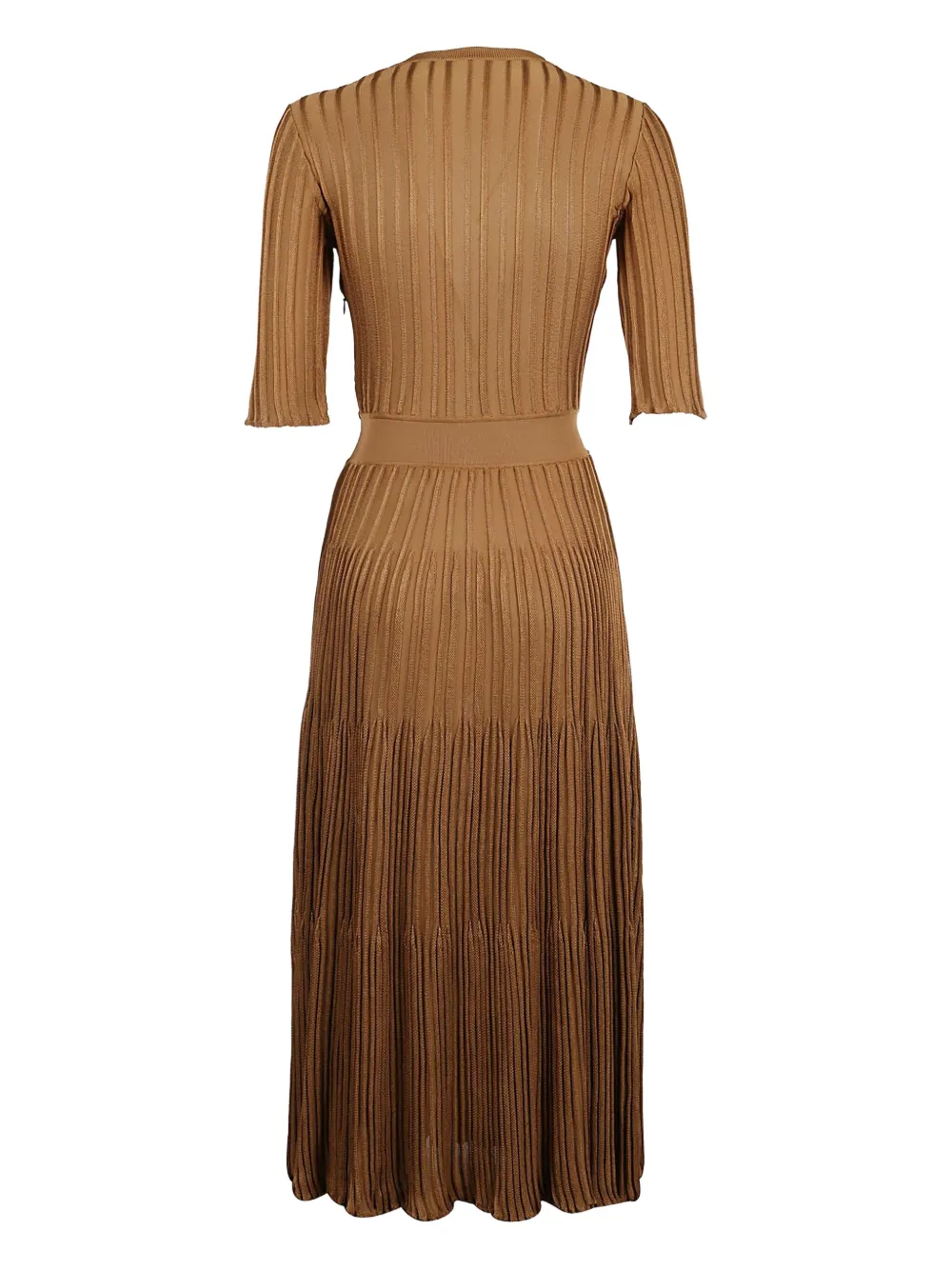 Платье миди в рубчик с плиссировкой Casasola, коричневый