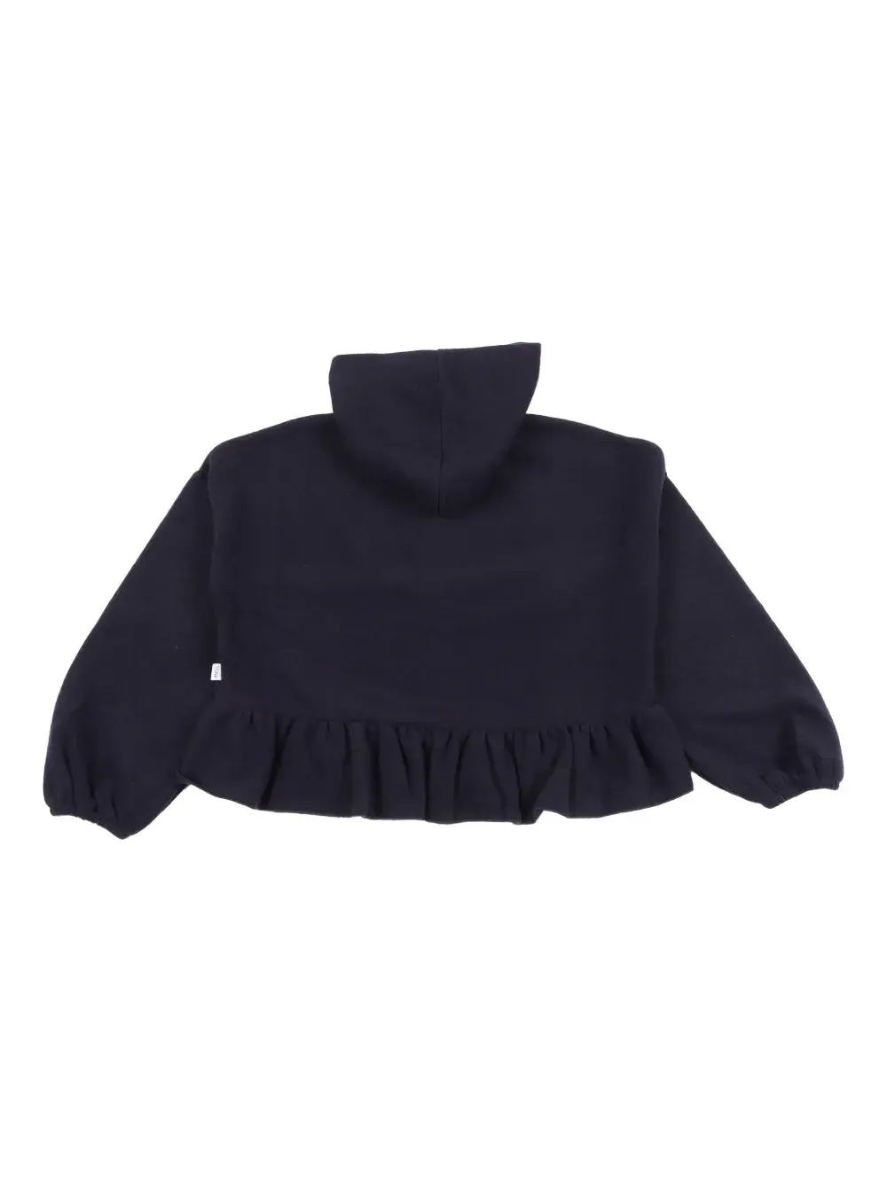 Черный оборчатый подол капюшон застежка-молния спереди длинные рукава рукава "фонарик"