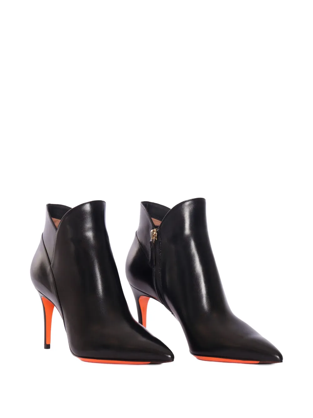 Черные туфли из овечьей кожи с заостренным мысом, на шпильке, с боковой молнией и оранжевой подошвой