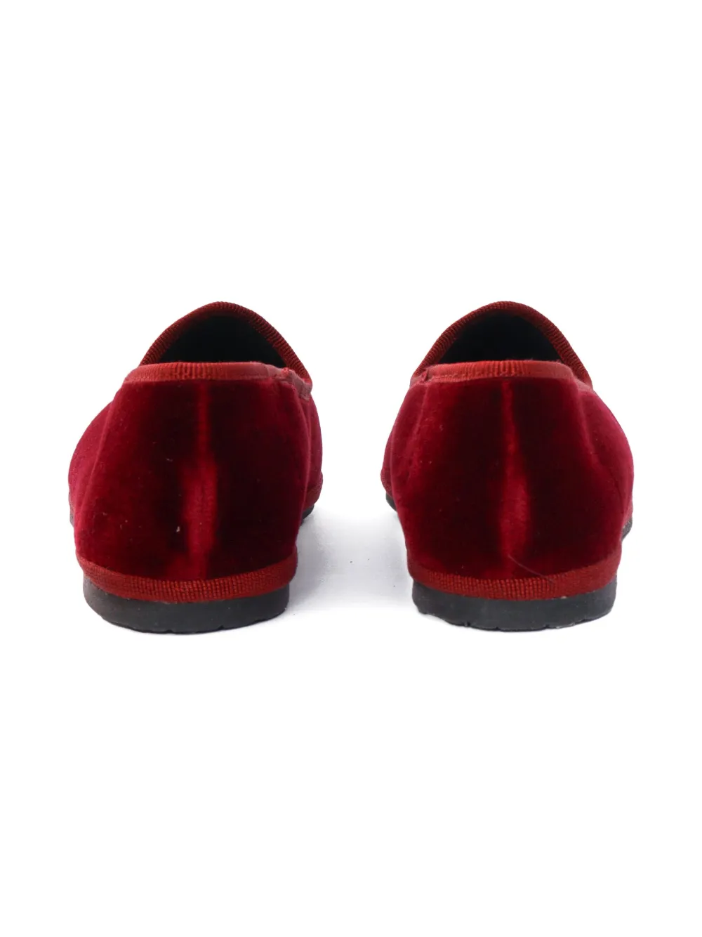 Темно-красный верх из бархата, плоская подошва, круглый носок, модель без застежки, отделка из хлопка
