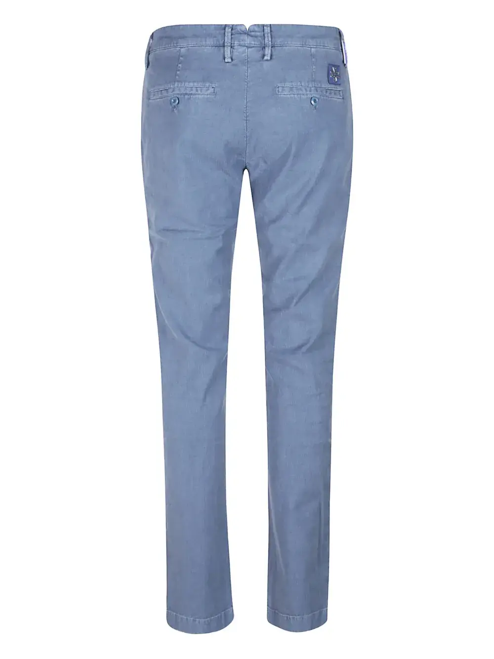 Синий боковые прорезные карманы задние прорезные карманы застежка на пуговицу и молнию прямые штанины средняя посадка