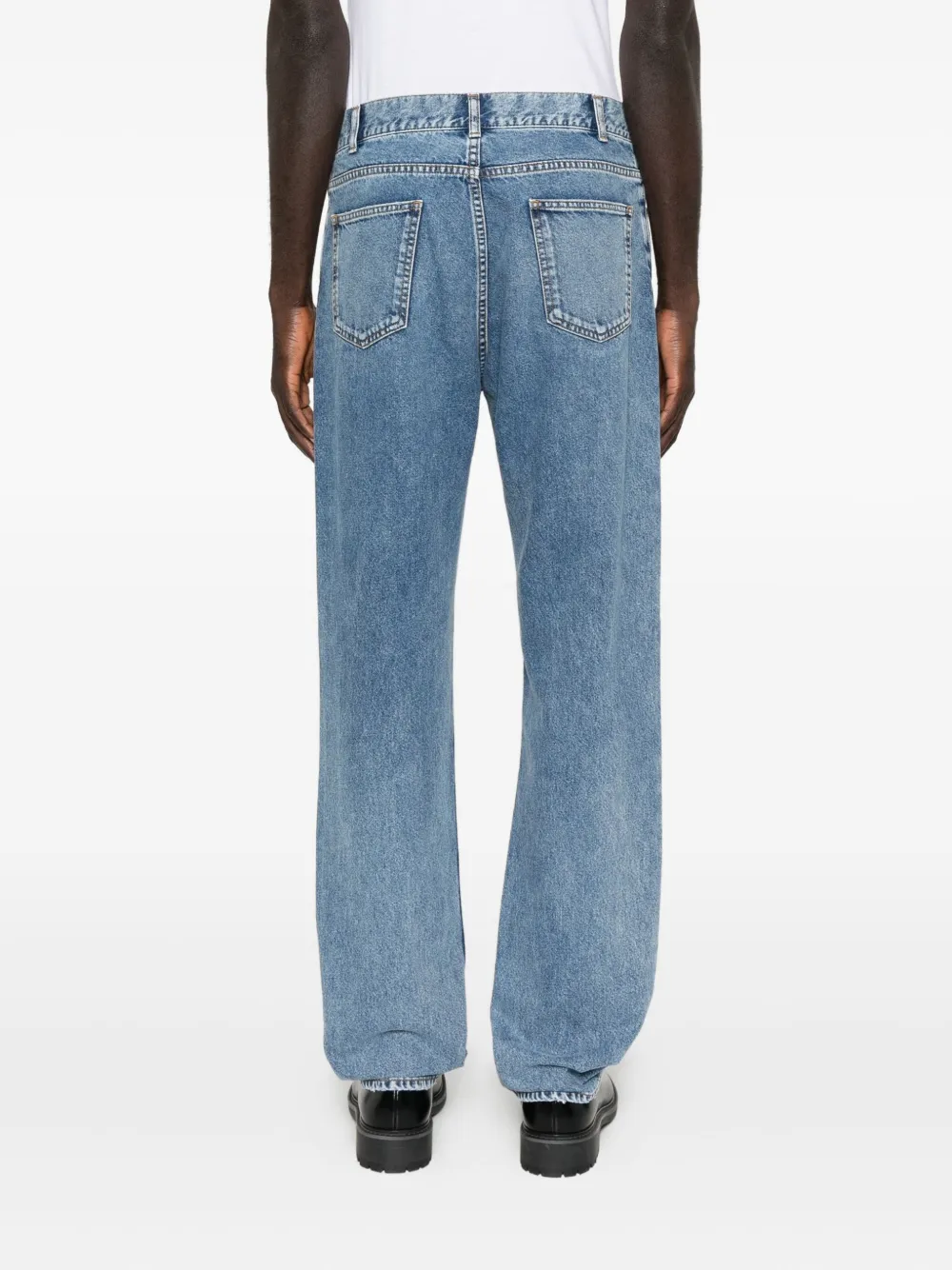 Синий классические пять карманов скрытая застежка на молнии и пуговице шлевки для ремня контрастная строчка прямой крой