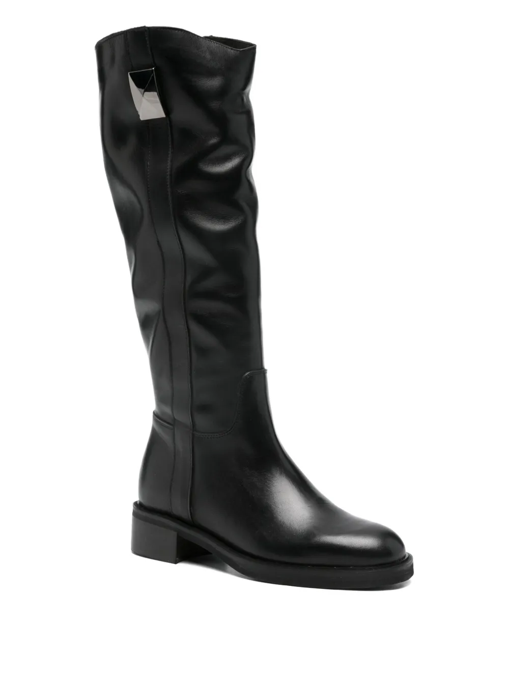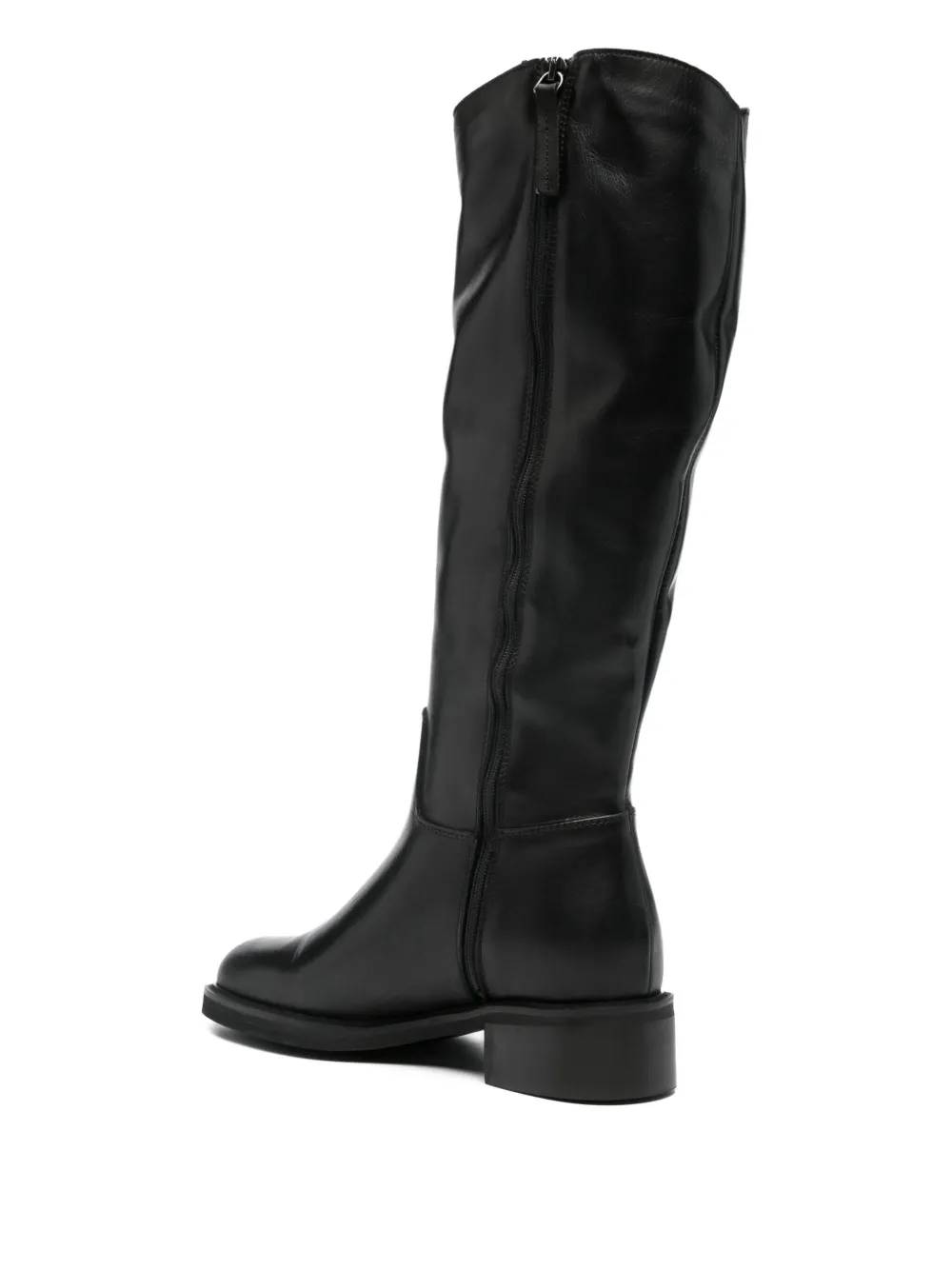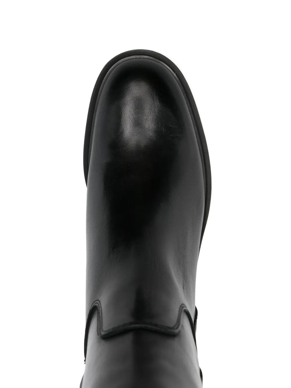 Черный кожа декор пряжкой низкий квадратный каблук застежка-молния сбоку круглый носок