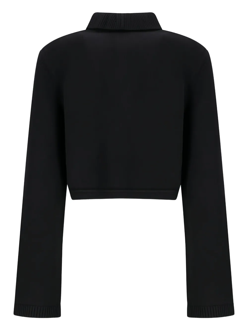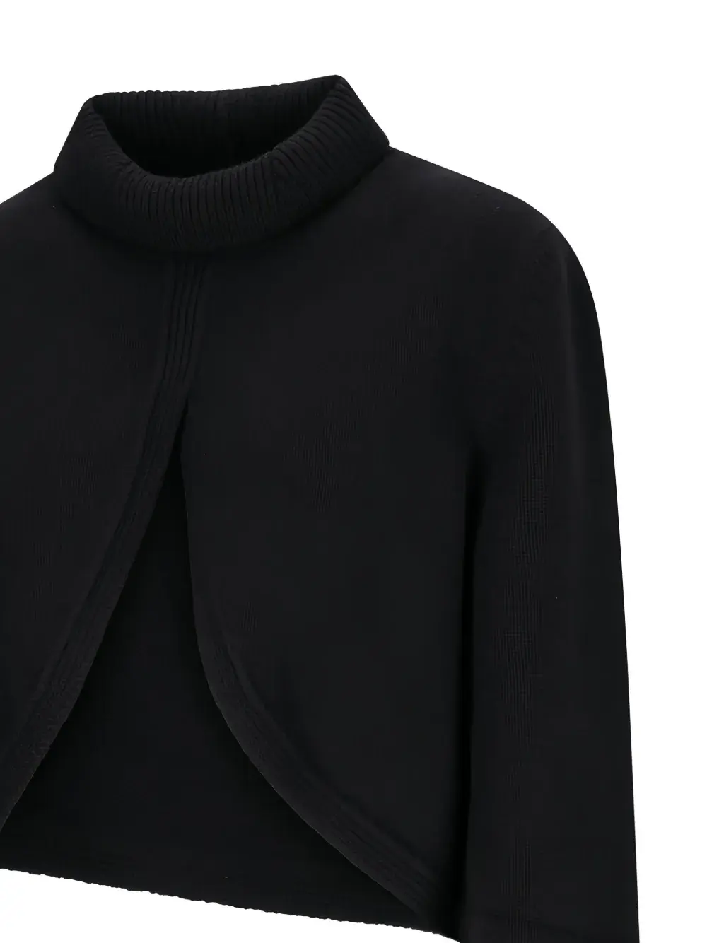 Черный свитер с вырезом, воротником-гольф, длинными рукавами, ребристым подолом и манжетами