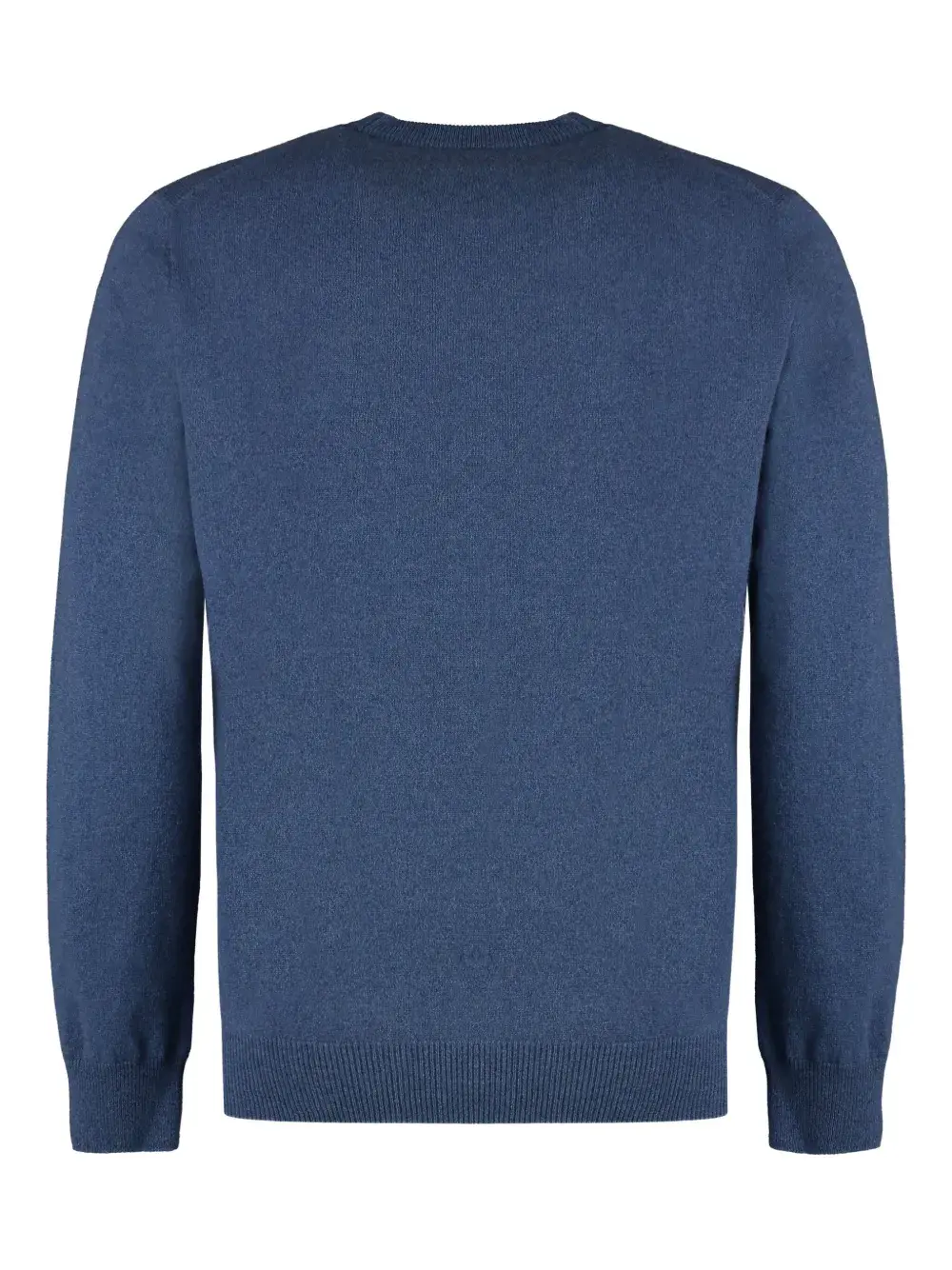 Стально-синий смесь кашемира и шерсти края с ребристой вязкой круглый вырез длинные рукава