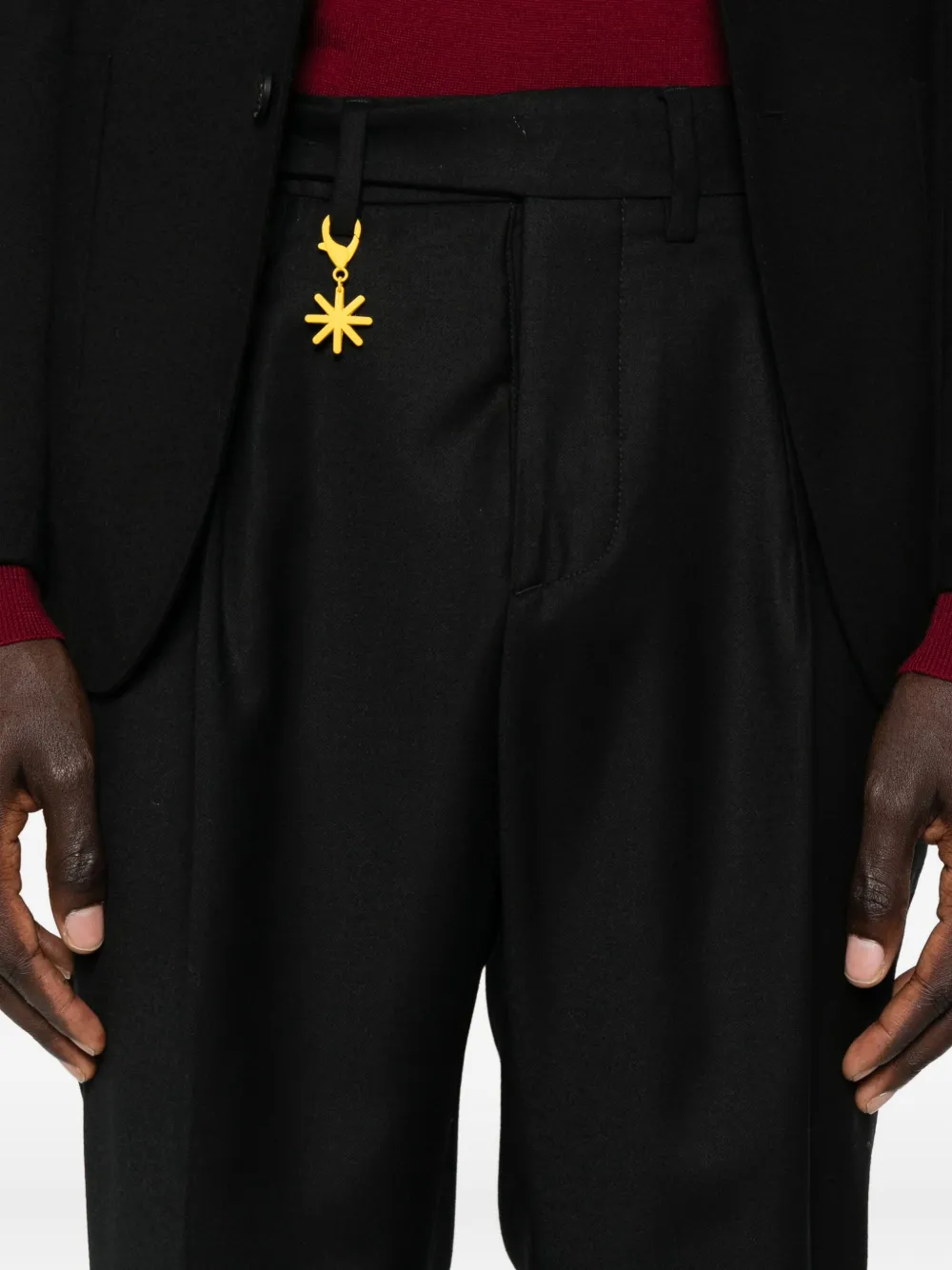 Черные смешанная шерсть двойные складки подвернутый низ декоративная подвеска
