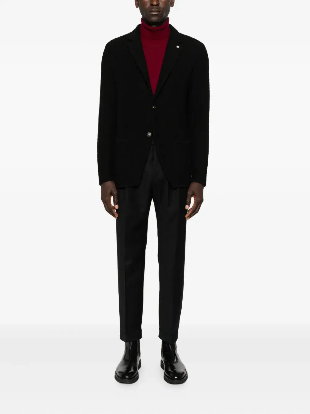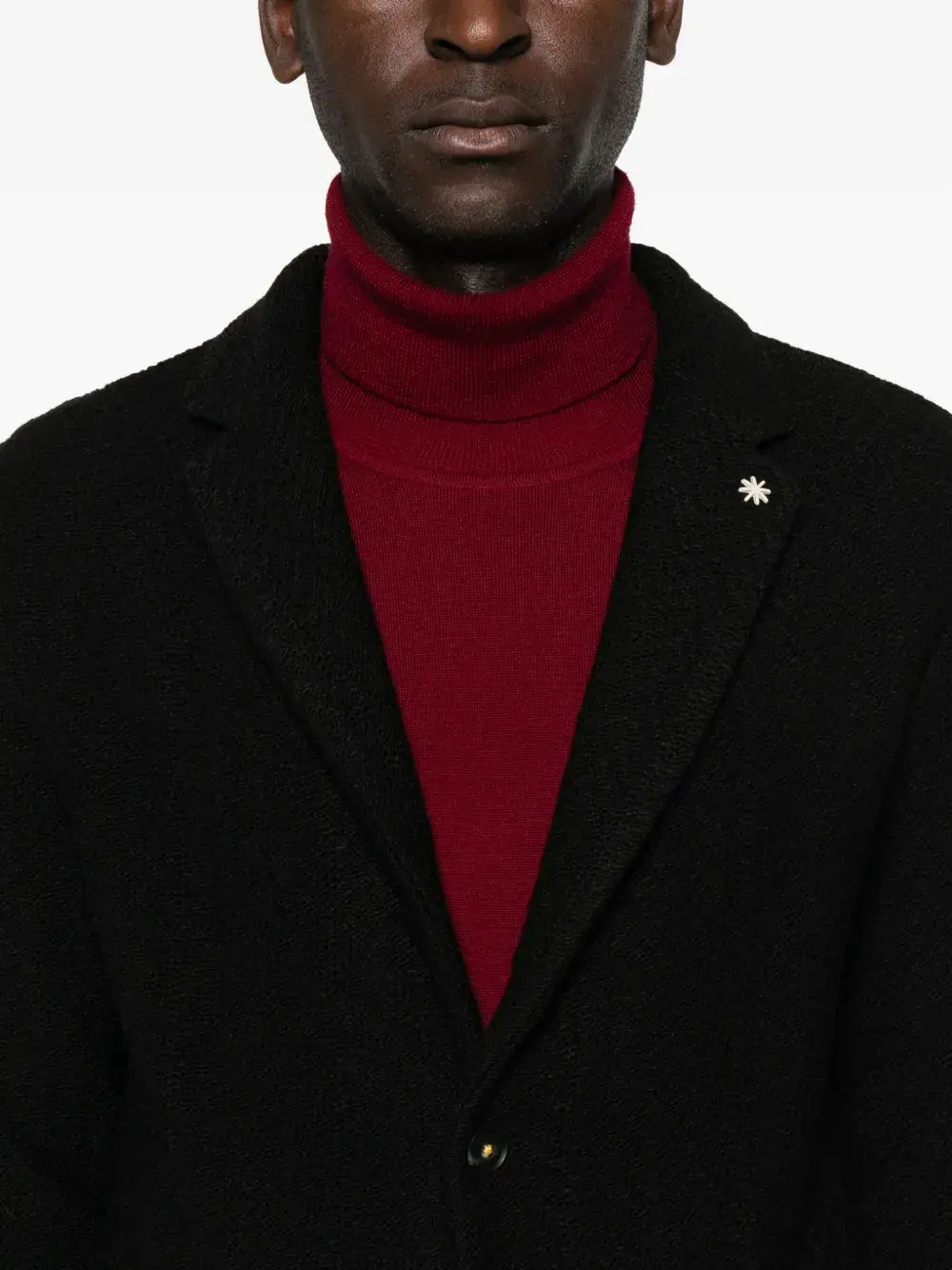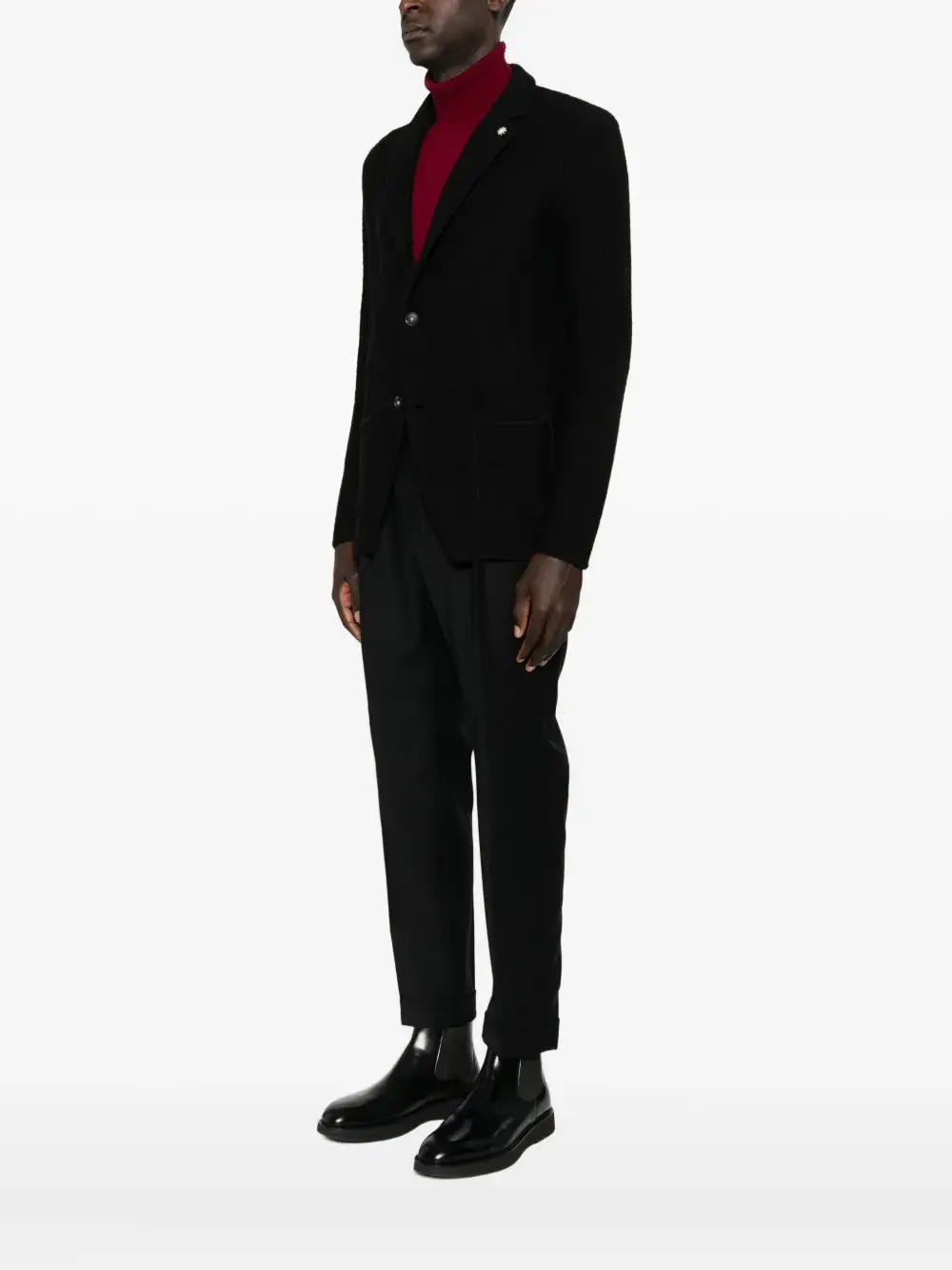 Черный с лацканами с вырезом застежка на пуговицы накладные карманы спереди длинные рукава