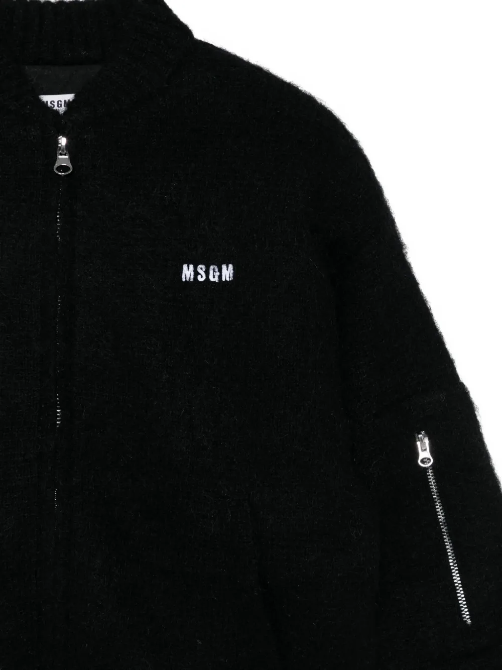 Куртка на молнии с вышитым логотипом MSGM Kids, черный