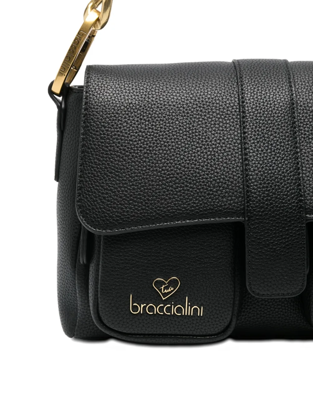 Черный кожа зернистая текстура фурнитура золотистого цвета передний клапан деталь с логотипом передние карманы