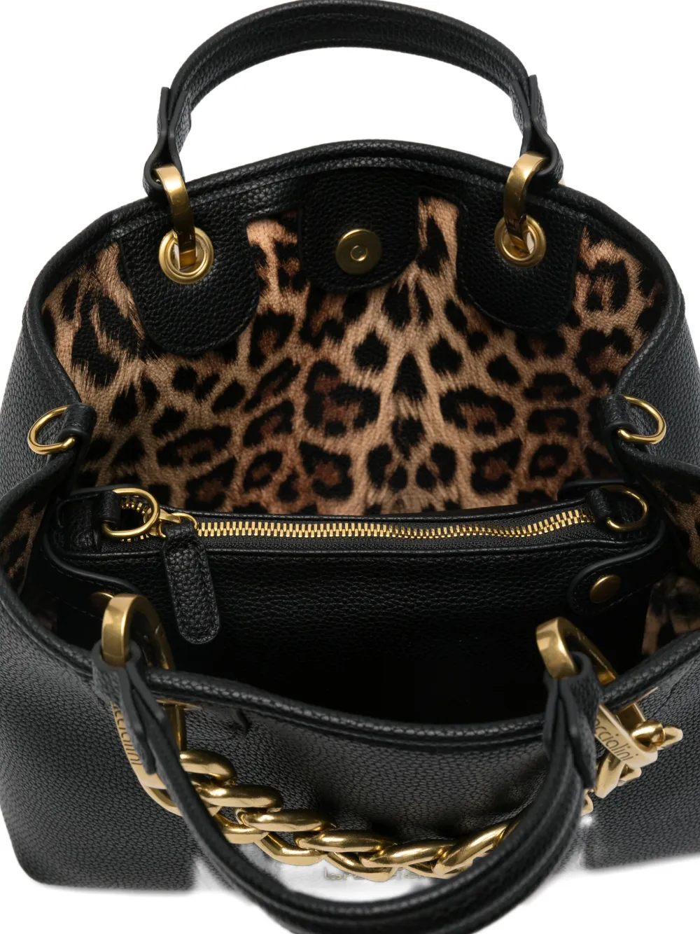 Черный кожа декор с цепочкой верхние ручки съемный плечевой ремень подкладка с леопардовым принтом